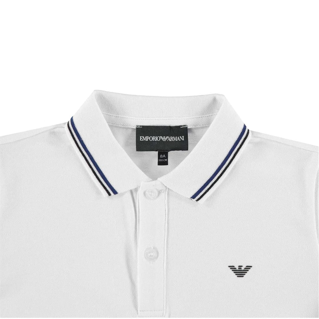 Treat your little one to the Juniors Polo T-Shirt brought to you by Emporio Armani. Crafted from a cotton rich blend fabrication, this polo is cut with short sleeves and a classic polo collar. Designed with a two button down fastening and split hem, this polo is finished with the Armani emblem to the chest for brand appreciation. Care: Machine washable. -