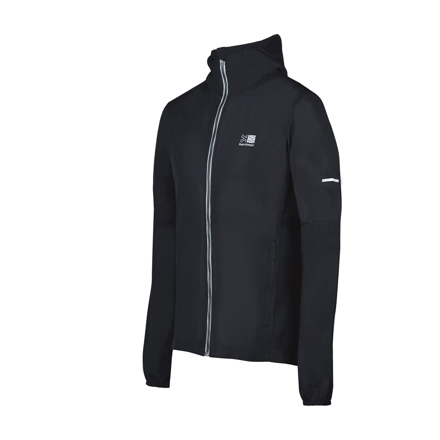 This Karrimor Run Jacket is crafted with full zip fastening and long sleeves for a secure fit. It features a hooded neckline as well as two hand pockets for a classic look and is a lightweight construction. This jacket is designed with a signature logo and is complete with Karrimor branding. -