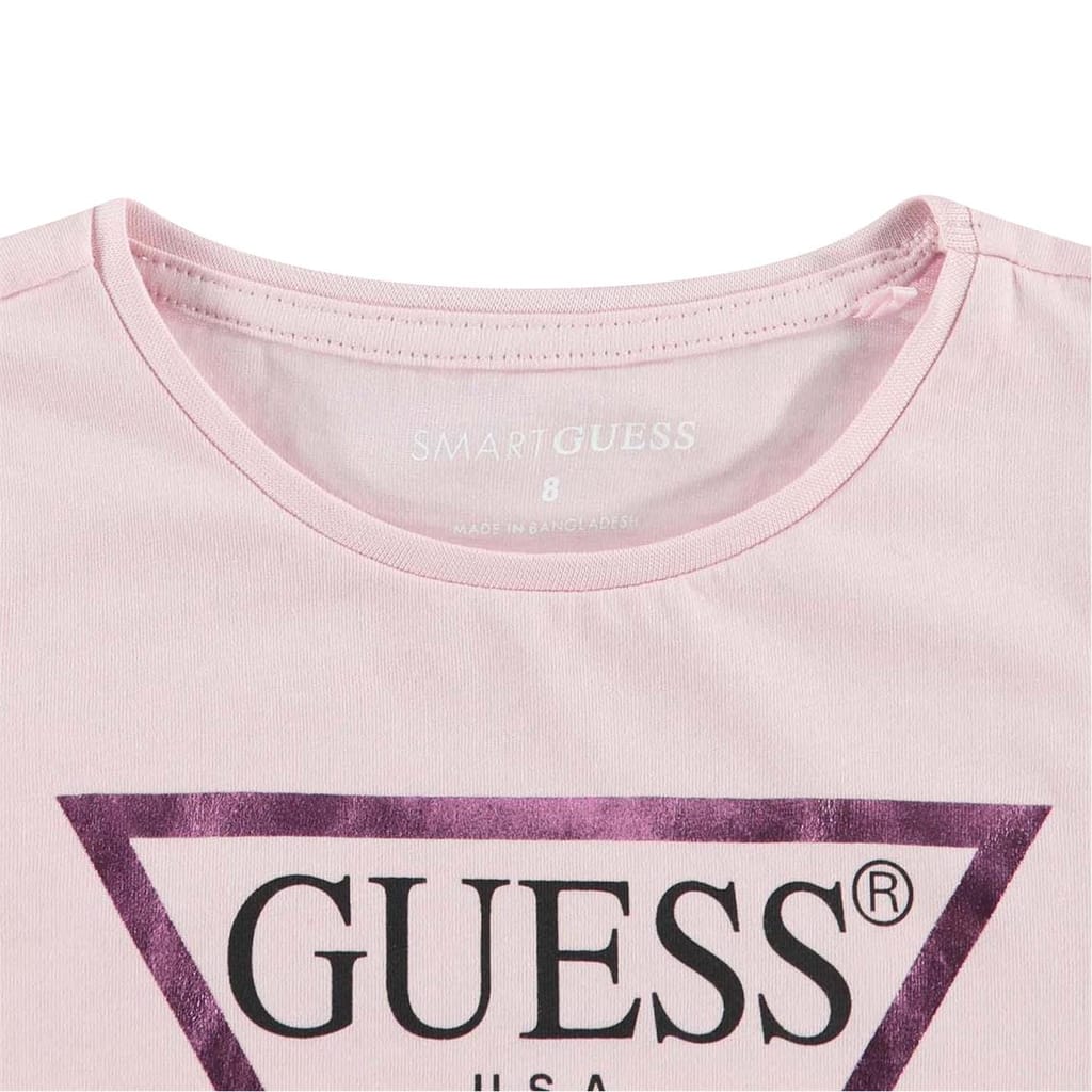 Update your little one's collection with this Girl's Core Logo T Shirt from Guess. Crafted from a premium 100% cotton fabrication, this t shirt is cut in a classic cut silhouette and features a ribbed crew neckline with short sleeves, a straight hemline and elasticated trims for an everyday essential piece. Complete with the Guess logo printed to the chest for instant brand recognition, this t shirt is perfect to pair with jeans and a bomber jacket for an everyday look, or pair with a skirt for any evening occasion. Machine washable at 30 degrees.