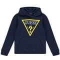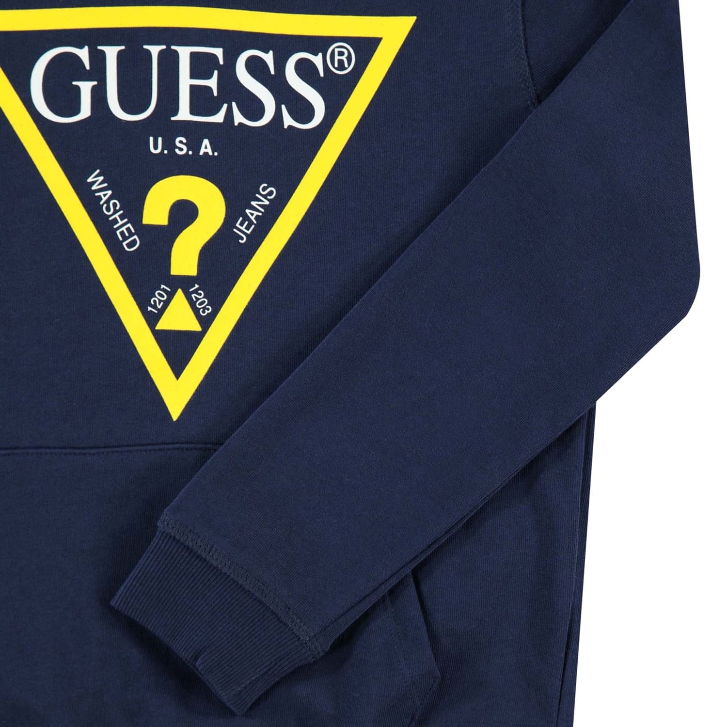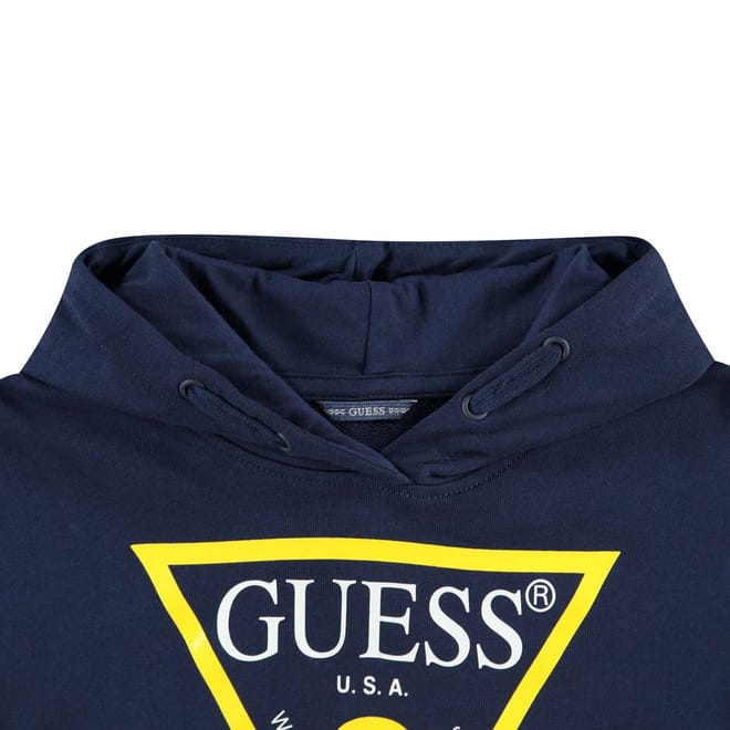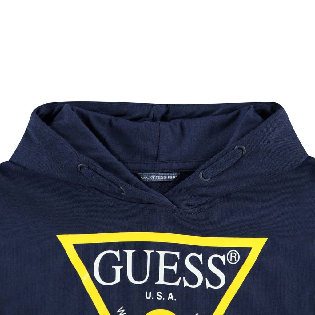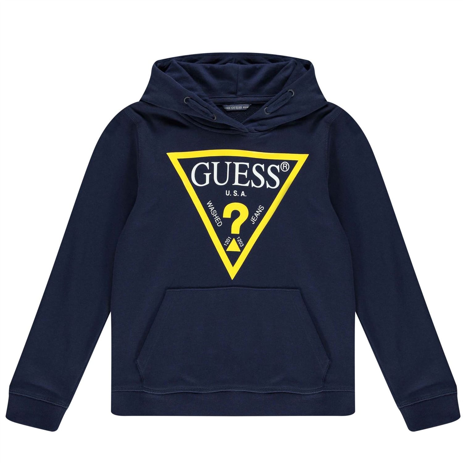 Refresh your collection with this Guess Triangle Logo OTH Hoodie. Constructed in a pullover style with long sleeves and ribbed trims for a comfortable fit, it features a hooded neckline with drawstring adjustment and a kangaroo pocket for a classic look. This hoodie is a solid colouring throughout designed with a signature logo and is complete with Guess branding. -
