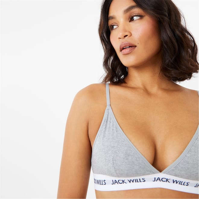 Made from soft cotton jersey, this bralette is designed with a hook fastening, adjustable straps and mesh lining. The Biddstone is finished with an athletic-style triangle cups as well as elastic branding with Jack Wills iconic logo graphics for added support.