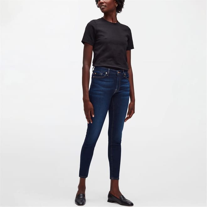 Enhance your collection with these 7 For All Mankind High Waist Skinny Crop Jeans. Constructed with a button fastening waist and zip up fly for a secure fit, they feature belt loops and five pockets for a classic look. These jeans are designed with a signature logo and are complete with 7 For All Mankind branding. -