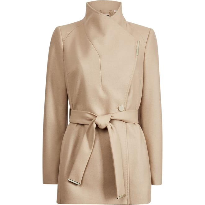 Rejuvenate your outerwear during the winter months with Ted Baker's Roses Wool Wrap Coat. Adroitly constructed in a wool blend fabrication, this coat features a shawl collar, a central belt fastening and a button fastening, twin sleeves, long sleeves and a straight hem for a classic silhouette. Fabric: 75% wool, 20% polyamide, 5% cashmere. Body Lining: 100% viscose. Sleeve Lining: 95% polyester, 5% Elastane. Dry Clean Only.