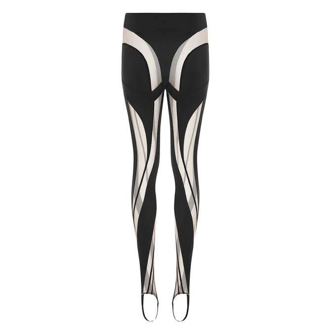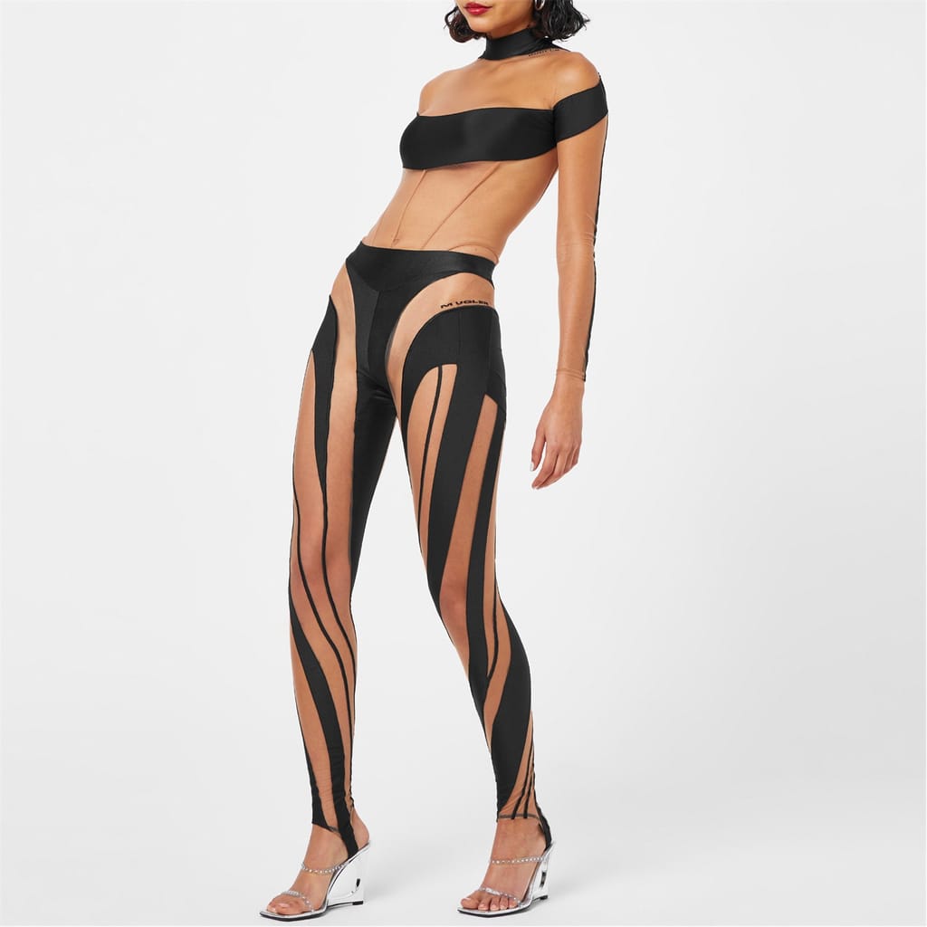 Embark on a bold fashion journey with Mugler's Sheer Swirl Leggings, a brand renowned for its attention to detail and innovation. Adorned with logo hardware, creating a designer stamp. From cocktails with the girls to glamorous soirées, these leggings are the perfect piece.