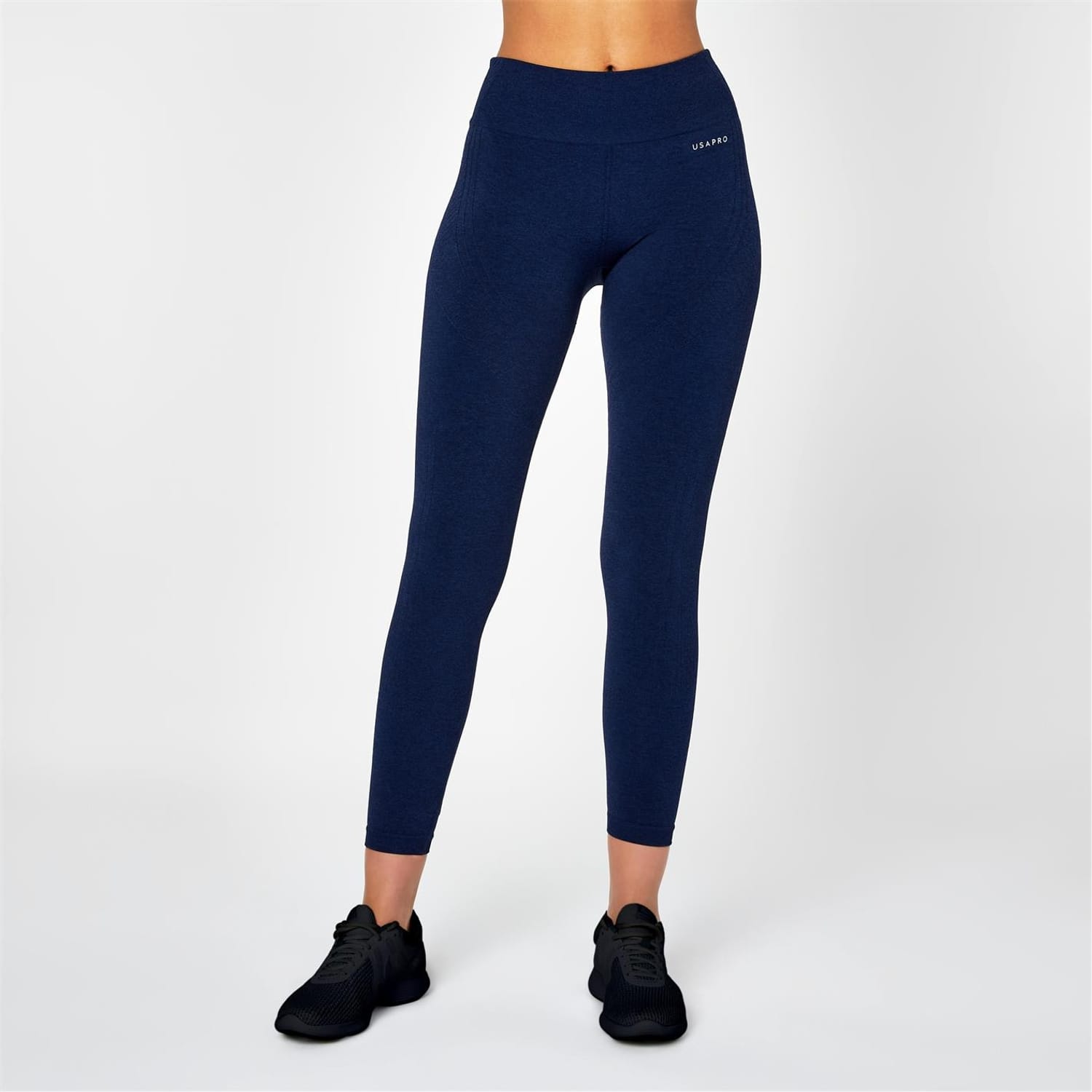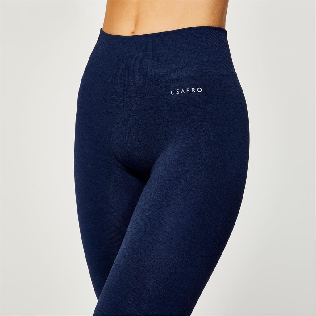 Seamless technology is the future of fitness wear, and these USA Pro Core High Rise Seamless Leggings Women's will give you confidence and style in the gym, park, yoga studio or just working out at home. Made from a soft nylon blend these leggings enhance your comfort with their smooth feel, enhance your comfort by removing unnecessary friction and boasting a breathable appeal allowing you to focus on hitting your fitness goals in style. Featuring Pro-dry technology these leggings wick away sweat to keep you cool even during the most intense exercises. Boasting a figure-flattering silhouette with a body sculpting knit and high waist reach these leggings define your silhouette allowing you to wear these with confidence, whilst the chic colourway makes for ease of styling, elevated by the iconic heat-sealed logo on the left leg for a distinctive finish.