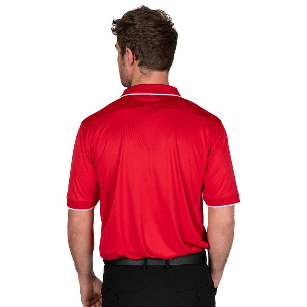 Island Green have introduced the IGTS1899 Men’s Performance Polo Shirt with a Mesh Contrast Fabric Back Yoke. Made from materials with 4-way stretch properties this garment allows for flexible movements teamed additionally with moisture wicking elements creating the ideal t-shirt that offers maximum comfort and freedom of movement during play. Island Green have designed this top from breathable materials giving you lightweight movements and therefore providing you overall with the latest technology and fabrics allowing you to perform, feeling unrestricted and protected from the ever changing elements out on the course. The ideal shirt for team or corporate golf events. -