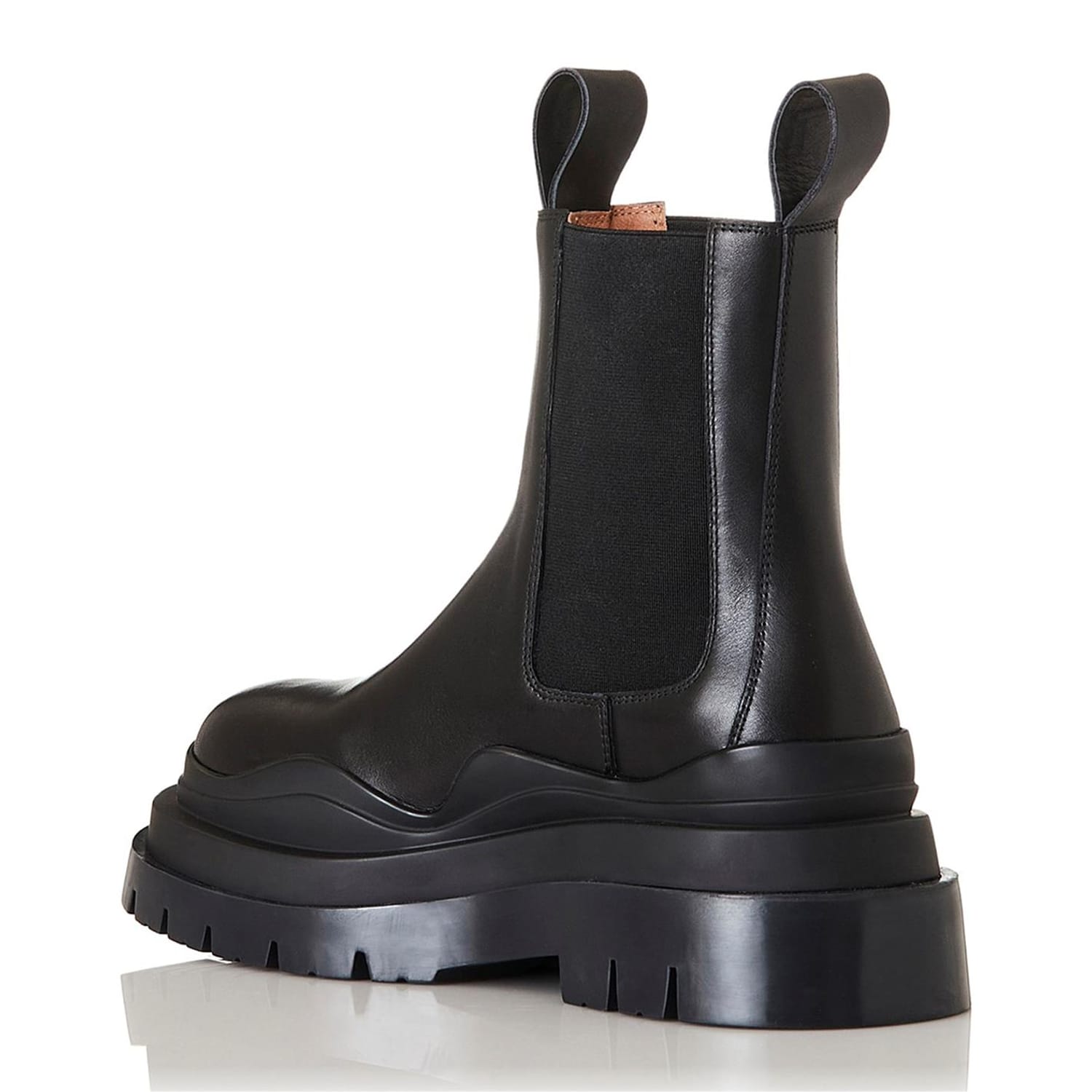 The Pixie boots are made from soft leather and set on a chunky and curved trek sole for comfort and versatility during the cooler seasons. They feature elasticated side panels and front and back pull tabs to slide into easily.
