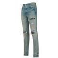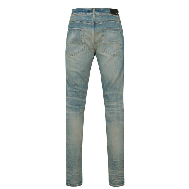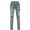 Denim is a staple of any wardrobe and the MX-1 Distressed Jeans brought to you by Amiri are the ideal choice to expand your collection. Expertly crafted from a premium stretch cotton twill, these staples are cut in a skinny fit for the perfect staple style and features traditional denim styles: belt loops, a central button fly, the classic 5 pocket design and a branded leather patch to the rear. Decorated in a dark wash, the design is elevated with distressed details all over and rips, some of which have been patched with bovine leather. Signing off this high-end look is the Amiri logo affixed to the rear right pocket for instant brand recognition with every wear. Principal Fabric: 92% cotton,6% elastomultiester, 2% elastane. Patches: 100% bovine leather. Dry Clean Only - always refer to and follow washing instructions for best wear.