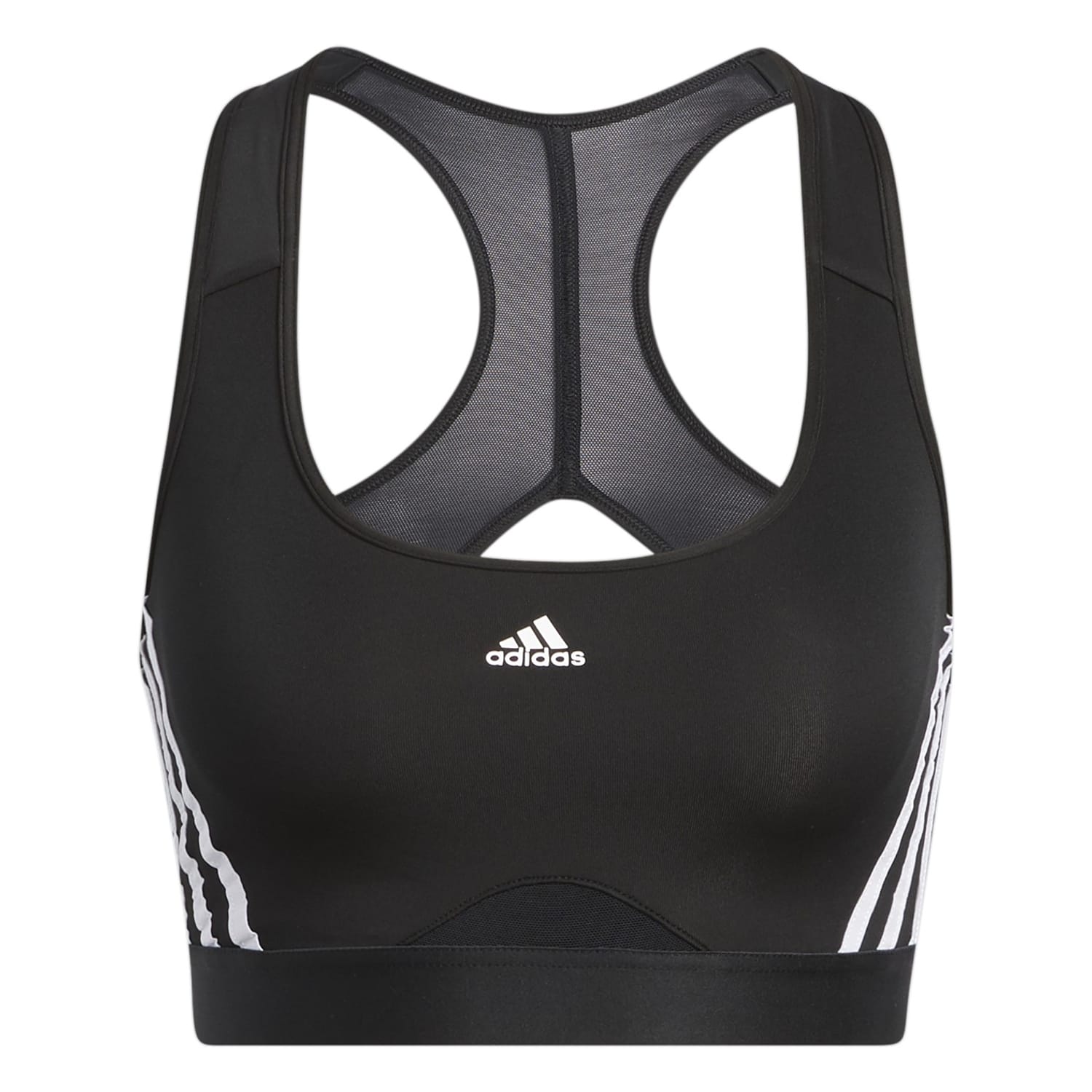 Elevate your performance with this sports bra by adidas, crafted from recycled polyester making you feel good while doing good. The medium-support sport bra is constructed using moisture-absorbing AEROREADY technology keeping your dry and comfortable. The bra features an elasticated band with branding embossed on the back and cut in a simple pullover design with breathable mesh at high sweat zones. The look is complete with the iconic adidas logo embroidered on the centre chest and the signature three-stripes on the side for instant brand recognition. -