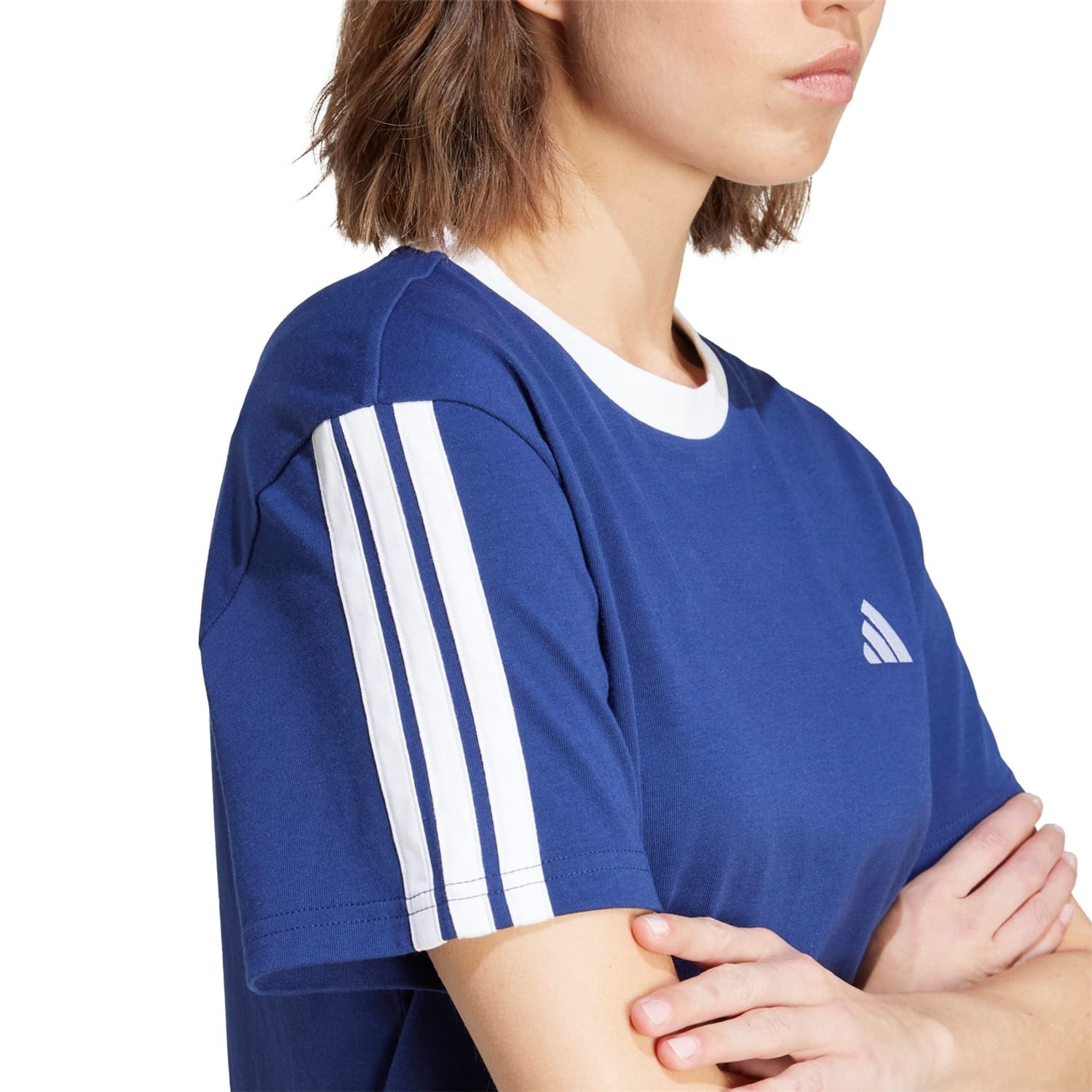 Get ready to inject some serious style and energy into your off-duty wardrobe with the adidas 3 Stripe T-Shirt. Made for those who never settle for ordinary, this t-shirt is a must-have for any active fashionista looking to make a statement. Crafted from soft and durable cotton, it promises comfort that lasts all day long—perfect for when you're on the go or just kicking back with friends. The design of this timeless classic is anything but basic. With its crew neck, short sleeves, and straight hem, it exudes a traditional vibe that never goes out of style. But here's where the magic happens – adidas's iconic 3 stripe motif adorns the shoulders and sleeves, giving it that extra touch of sporty flair that sets it apart from the rest. And of course, it's completed with the signature adidas branding, because we know you deserve only the best. 100% Cotton. Machine washable, follow care instructions. -