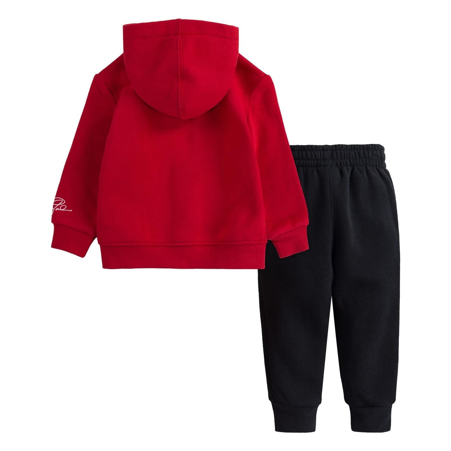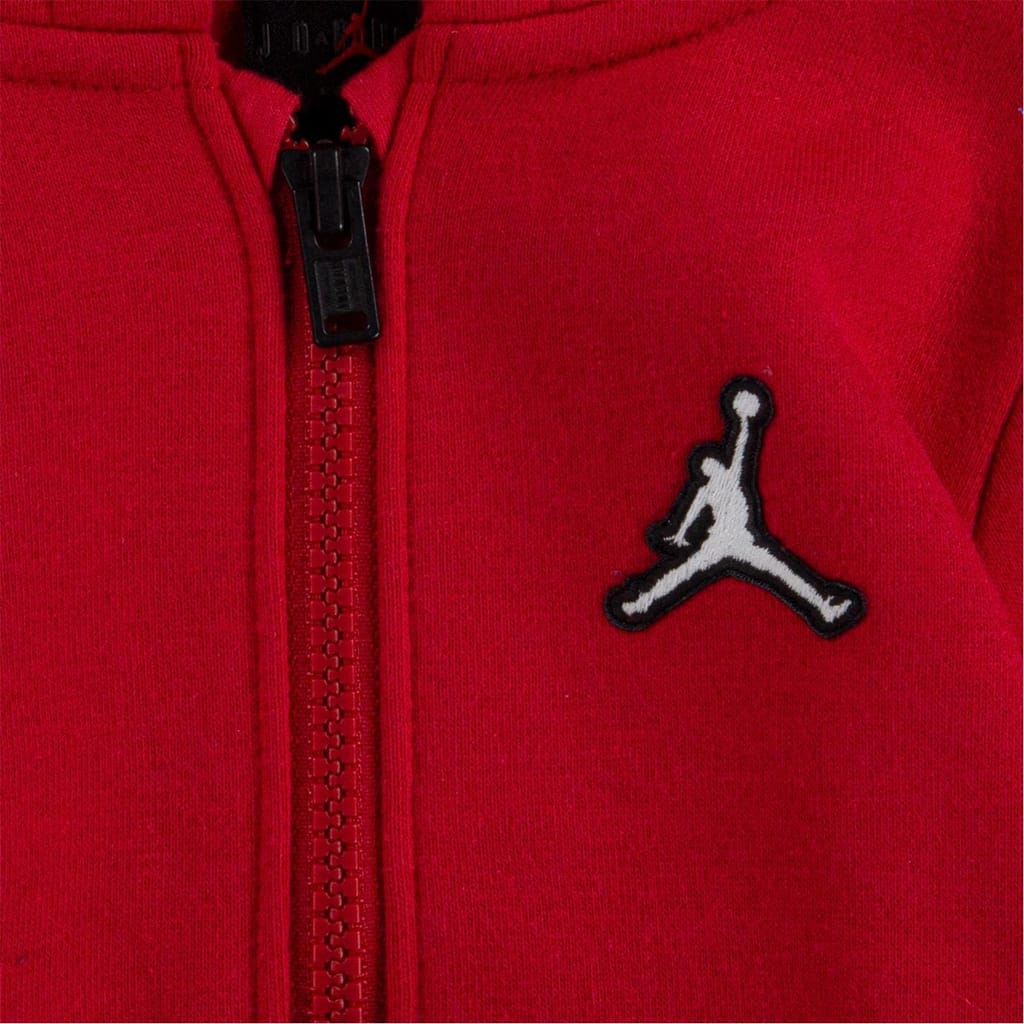 The Air Jordan Fleece Tracksuit in a soft sueded fleece standard fit and full zip hoodie. Featuring long sleeves and long legs with ribbed cuffs and stretchy elastic waist band for easy fitting and the Jordan logo at the chest and at the leg. . The inseam length is 10 based on a size 12M.