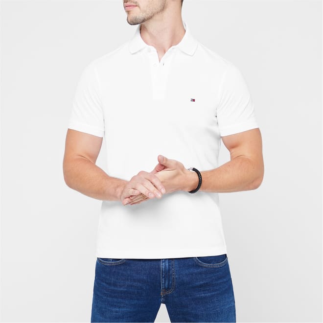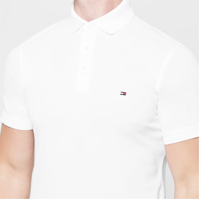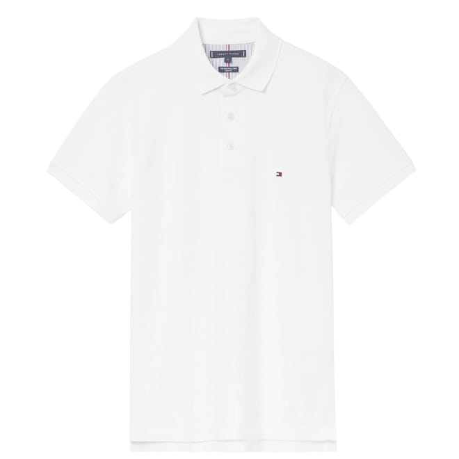 Cut in a slim fit, the 1985 Core Polo from Tommy Hilfiger has been made from a soft stretch organic cotton pique fabrication with an innovative flex technology. With a classic polo collar, two button placket and short sleeves, this wardrobe staple polo has an ithaca stripe to the inside collar and a small Tommy Hilfiger branded logo to the chest. -