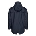- The design is easy-to-wear with an elegant drape. The unisex rain jacket is completed with under-arm eyelets and a back yoke with concealed vents for breathable comfort.