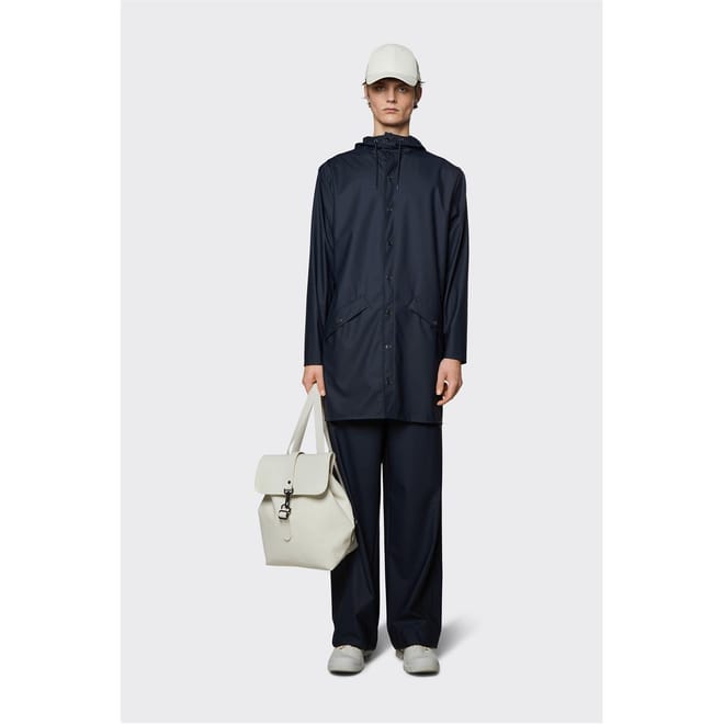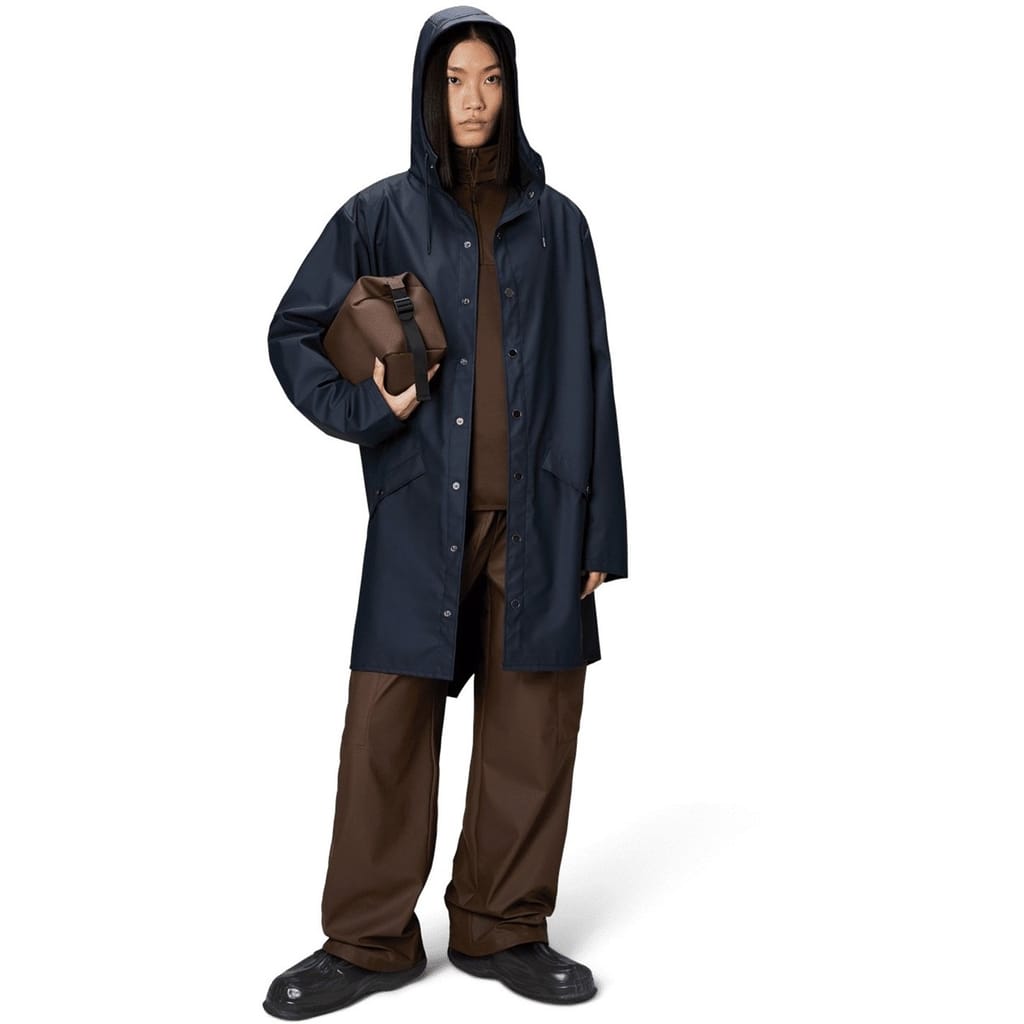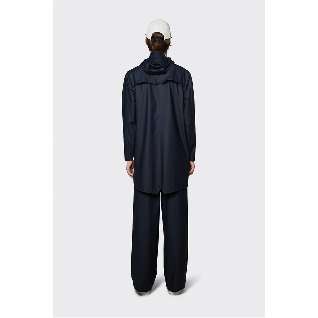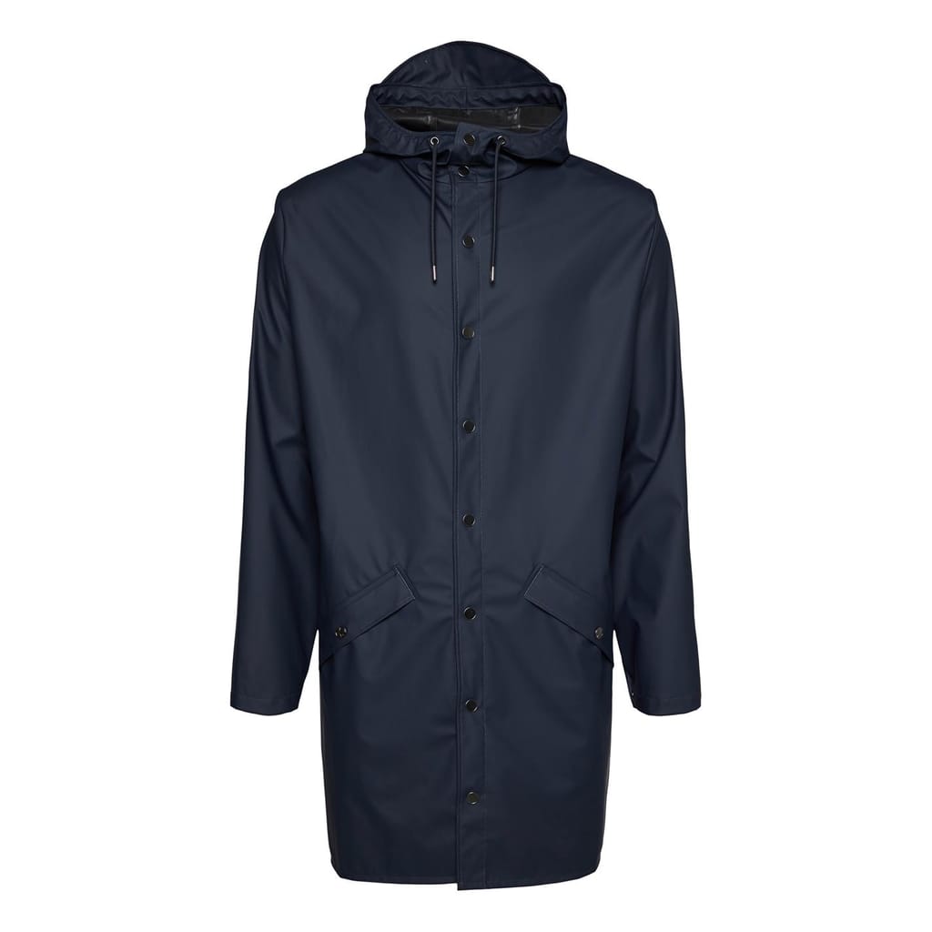 - Long Jacket is cut from Rains' signature PU fabric and features welded seams. The finish is lightweight with a smooth feel.