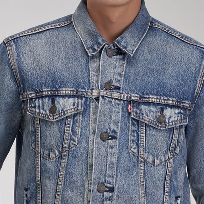 Revitalise your wardrobe with the Denim Trucker Jacket by Levis, expertly crafted in a traditional high-quality cotton twill. A timeless silhouette, this piece is cut for a regular fir and features a point collar framed by full-length sleeves with buttoned barrel cuffs. Two buttoned patch pockets with flaps and two hand pockets flank central front button-through fastening, leading to a straight hem with adjustable detailing to maximuise your comfort. Classic denim stitching completes the construction, and the solid block colourway provides an exceptional foundation to style this piece atop any casual ensemble- making it an invaluable addition to your collection. The signature Levi's logo tag on the chest pocket delivers instant designer appreciation and finishes the look with marker of quality. Machine wash: Please refer to and follow garment labelling for precise care instructions. -
