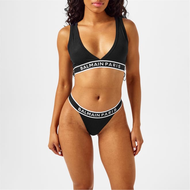Add a designer touch to your base layer with the Balmain Logo Embroidered Triangle Bra. Crafted from a soft Polyamide fabrication, this ribbed construction styles triangle cups with thick standard straps cut with a v silhouette to the front and back for a feminine fit. Complete with an elasticated underband branded with an embroidered logo for a high-end appeal, this bra can be worn under your casual attire for all day comfort. Composition: 90% Polyamide, 10% Elastane.