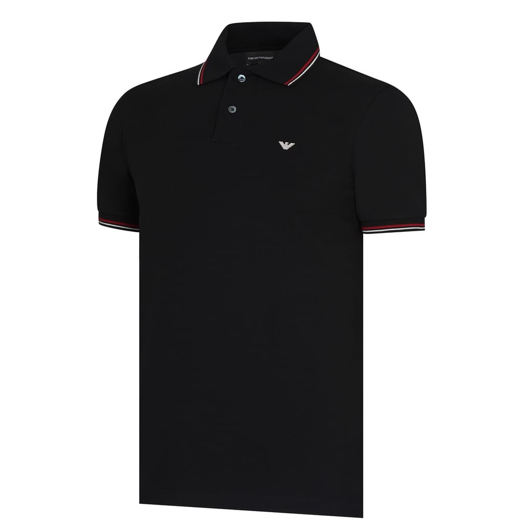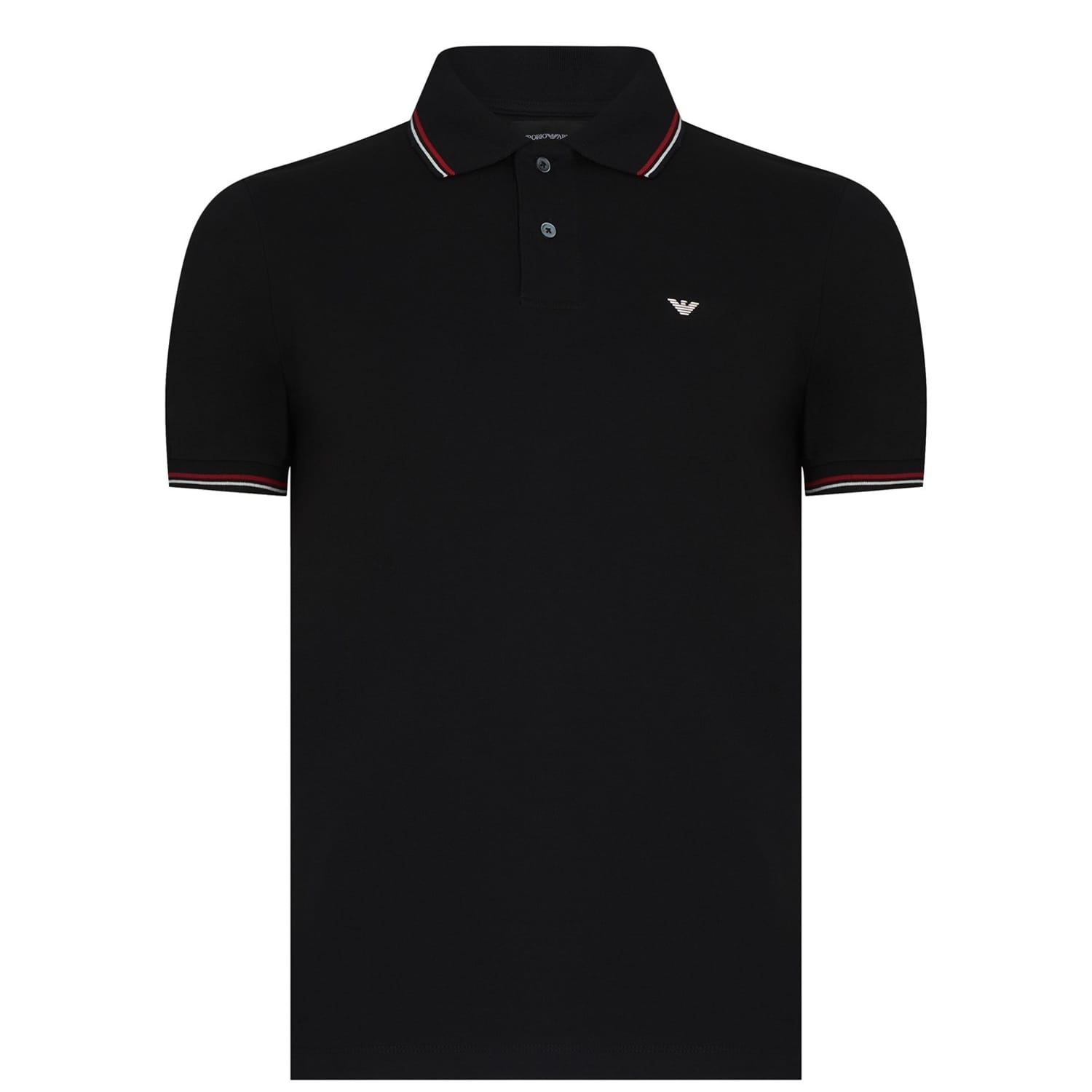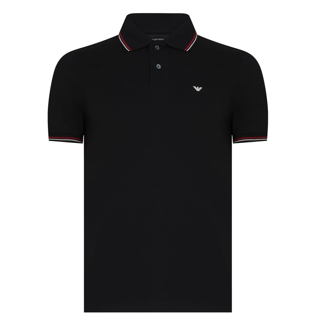 Emporio Armani Short Sleeve PolosRefine your casual collection with this Regular Tipped Polo Shirt from Emporio Armani. Crafted in soft cotton and elastane blend material, this polo shirt is cut in a slim fit and features short sleeves with a pointed collar, a classic three-button placket, a split hemline for added maneuverability and ribbed cuffs and a collar for a snug fit. The look is then finished with striped trim tipping to the cuffs and collar for a sporty look along with the brand's signature Eagle logo to the chest for brand recognition. Main Fabric: 96% cotton, 4% elastane. Rib Details: 98% polyester, 2% elastane. Machine washable at 30 degrees.