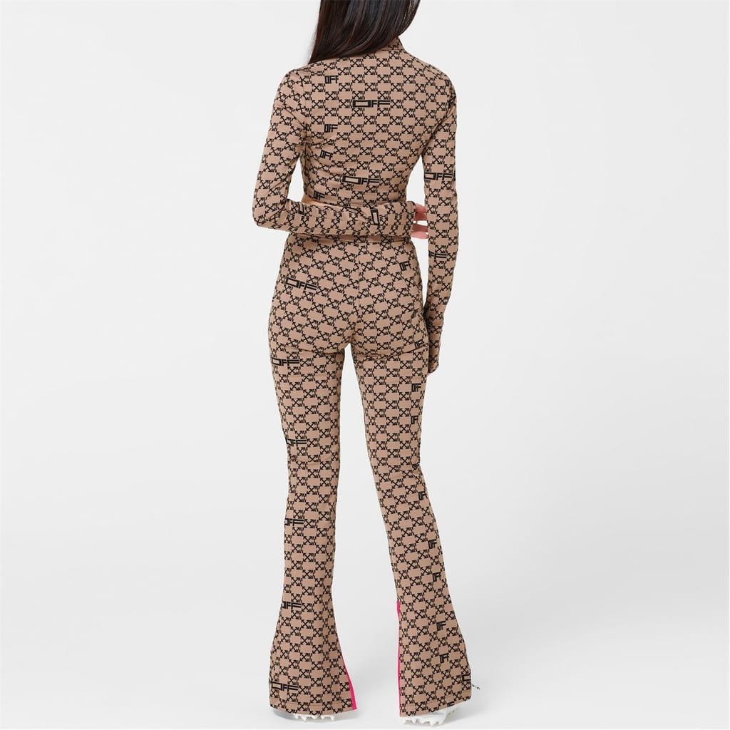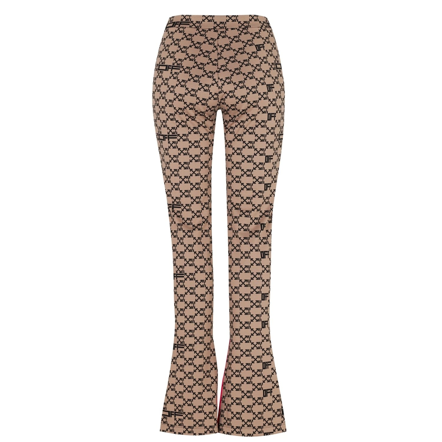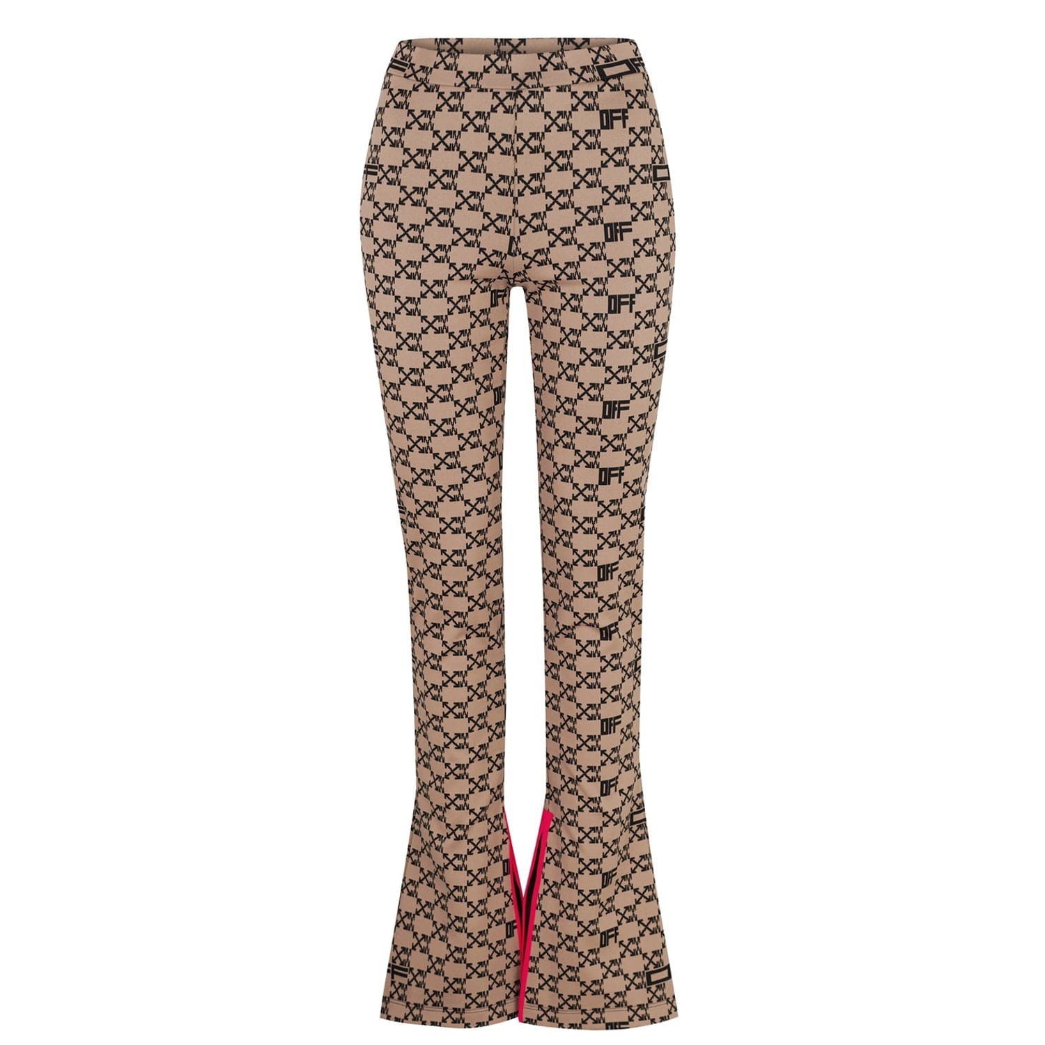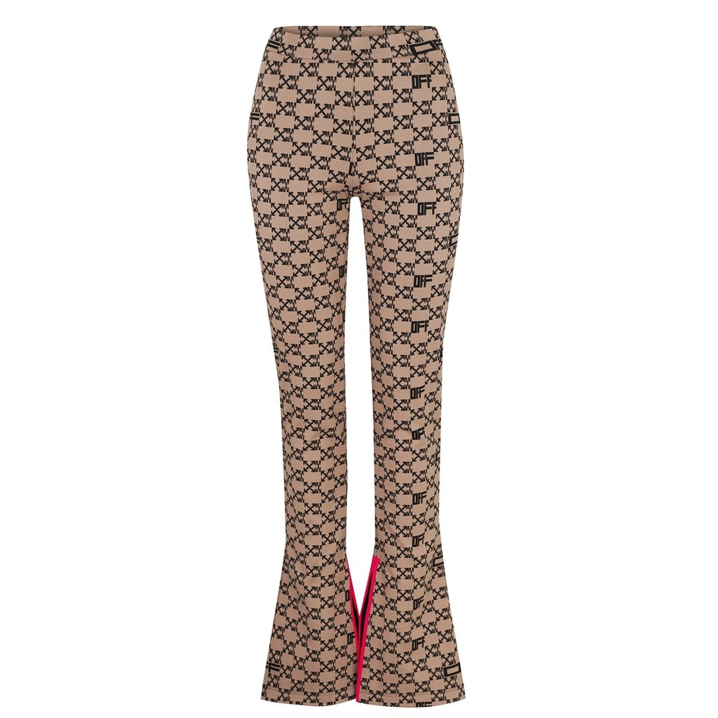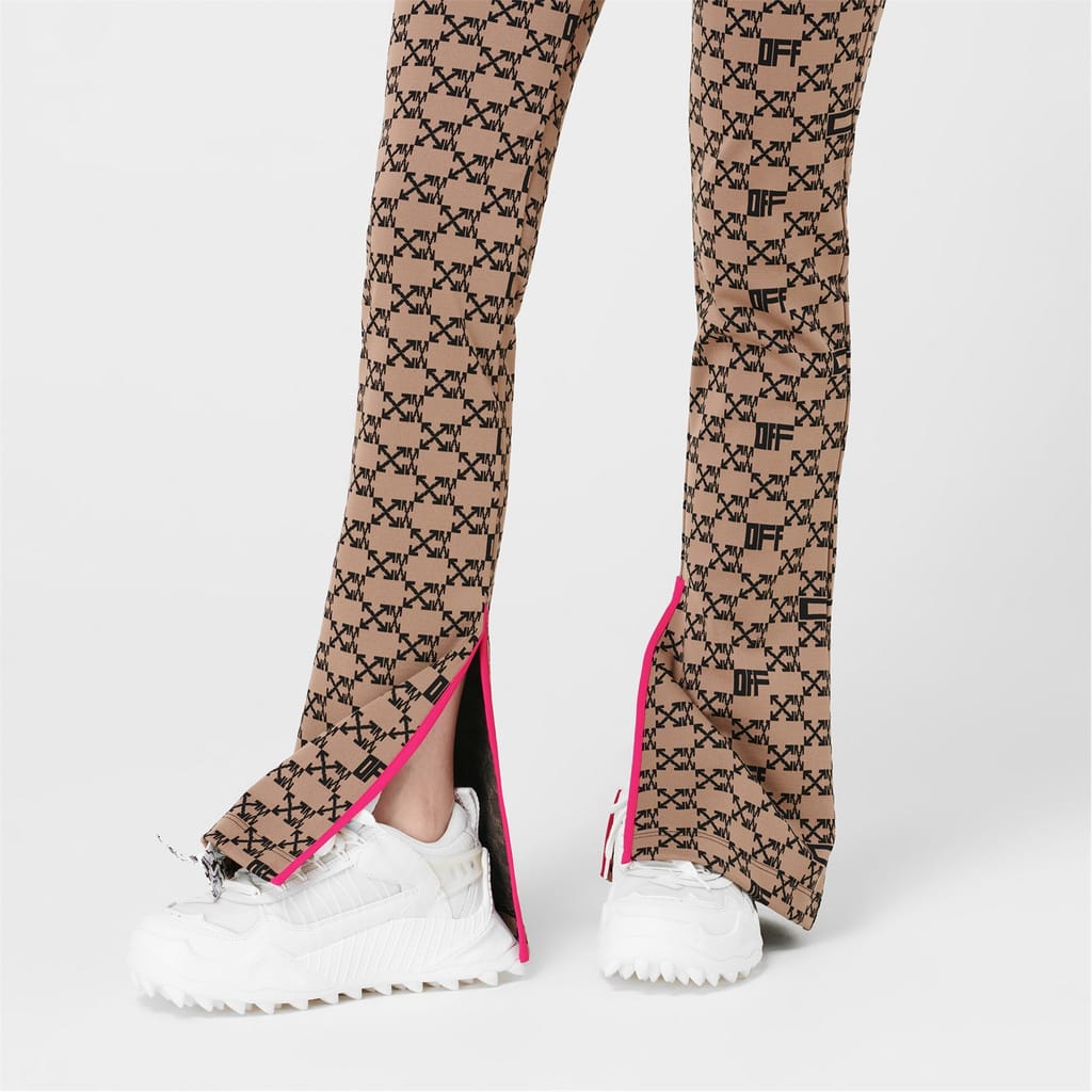 Add to your streetwear with these Monogram Split Trousers from Off-White. Designed with a high rise elasticated waist for comfort, this pair is cut to a slim fit with a zipped fastening to the side for a refined and easy wear. In a monogram pattern detailing the iconic arrows and 'OFF' stamp with a split hem to each leg, these trousers are finished with a neon pink trim surrounding the split.