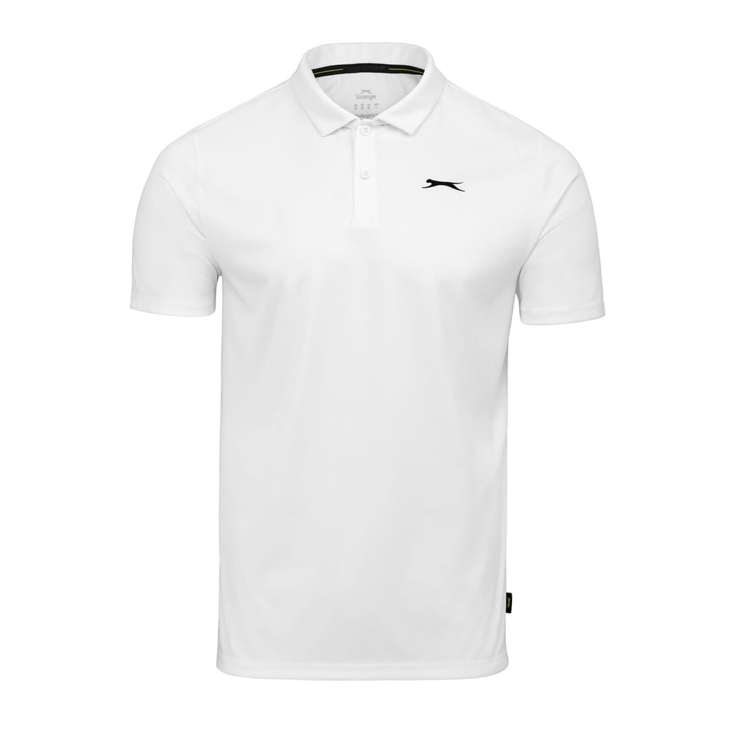 - This Slazenger Golf Solid Polo Shirt Mens is crafted with a folded collar and a two button placket for a secure fit. It features short sleeves for a classic look and is a lightweight construction. This polo shirt is a solid colouring throughout designed with a signature logo and is complete with Slazenger branding.