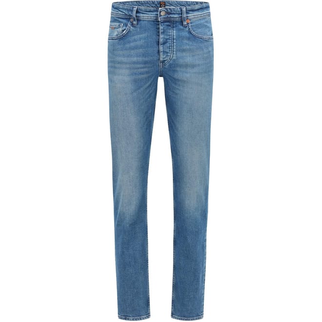 The BOSS Taber Tapered Fit Jeans balance style with modern comfort through their tapered cut. This Hugo BOSS denim design creates a clean profile, striking the balance between fitted and relaxed proportions while maintaining the classic appeal of straight-leg styling.