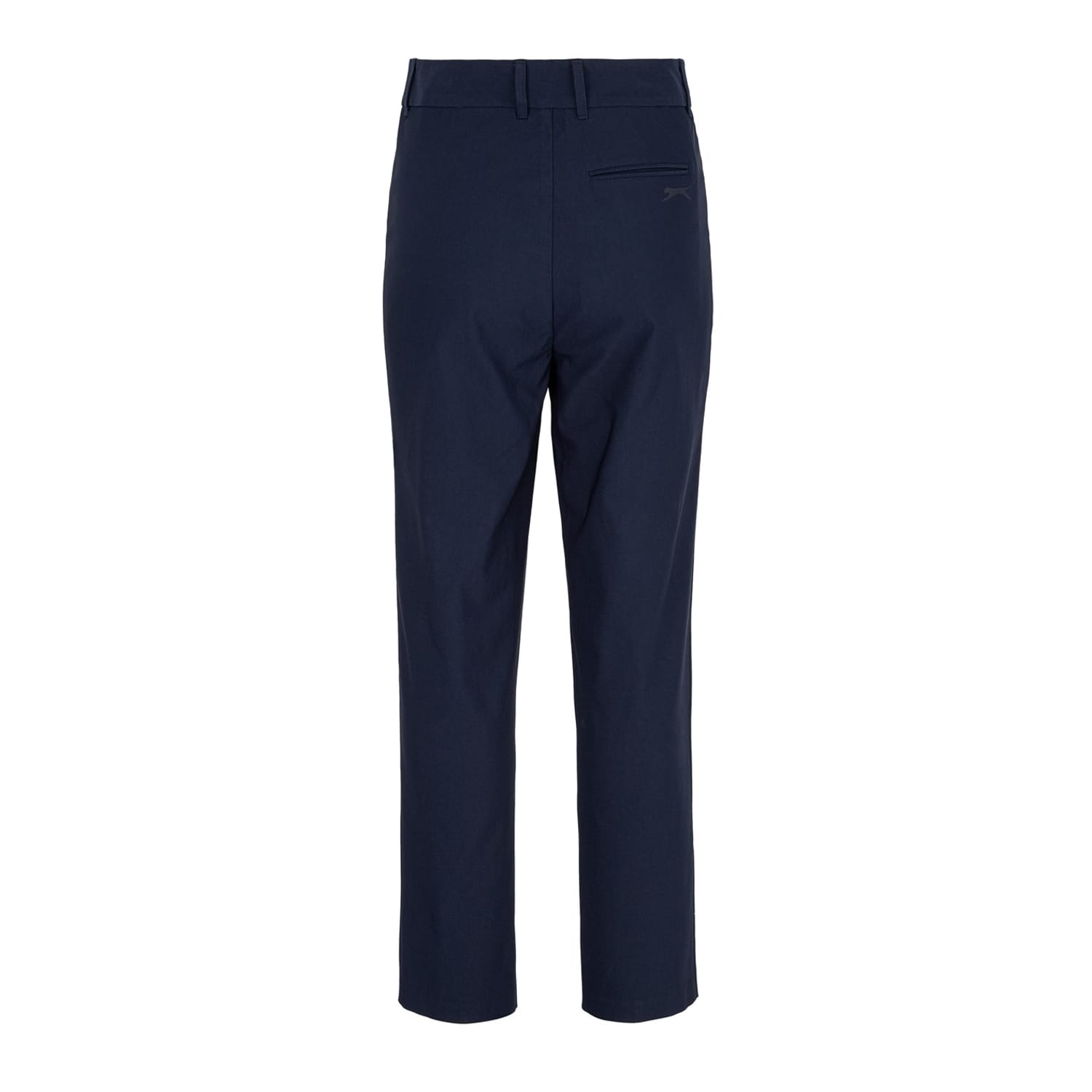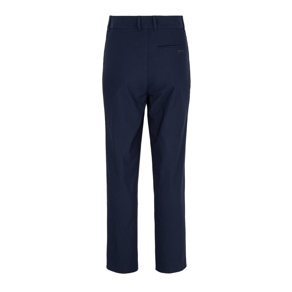 - These Slazenger Golf Trousers are perfect for the range. With soft polyester material, these trousers are cut with a hook and eye zip fly waist, 2 front slip pohilst crafted in a straight leg fit from a rear pockets. They are decorated in a solid Slazenger branding printed to the reverse.
