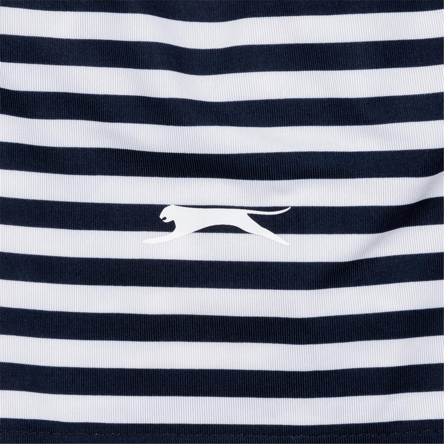 This Slazenger Stripe Polo Shirt is crafted with a folded collar and a three button placket for a secure fit. It features short sleeves for a classic look and is a lightweight construction. This polo shirt is a stripe design with a signature logo and is complete with Slazenger branding. -