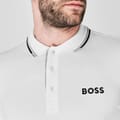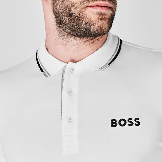 Refresh your casual rotation with this Paddy Pro Polo Shirt from Boss, part of their leisurewear range. Crafted from a soft cotton, this polo shirt is cut in a regular fit and features a three button placket, a fold down collar, short sleeves, a spit hem and contrasting ribbed trims located on the collar and cuffs for a stand out look. The look is finished with the Hugo Boss logo embroidered to the chest and rear. -