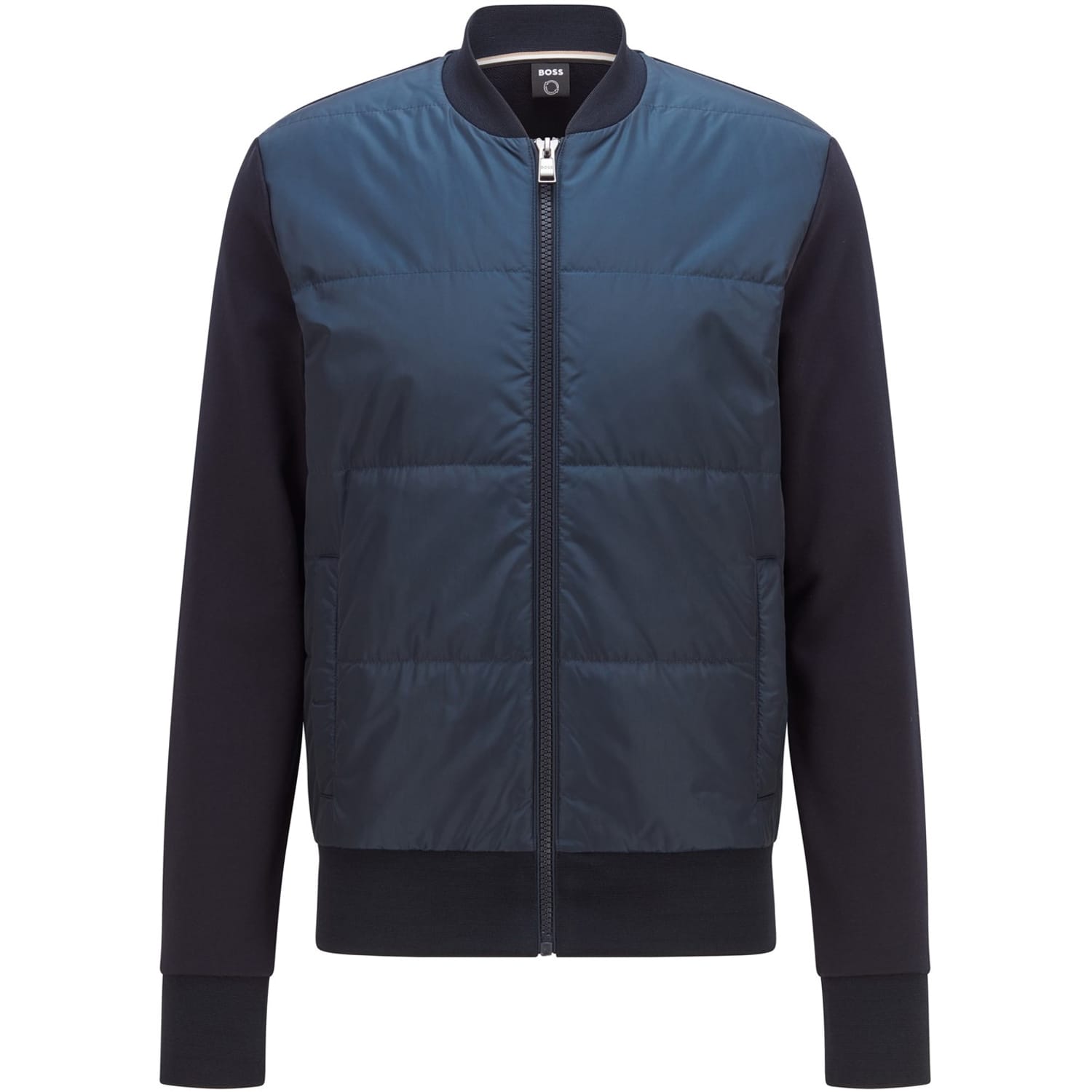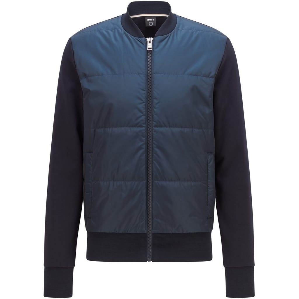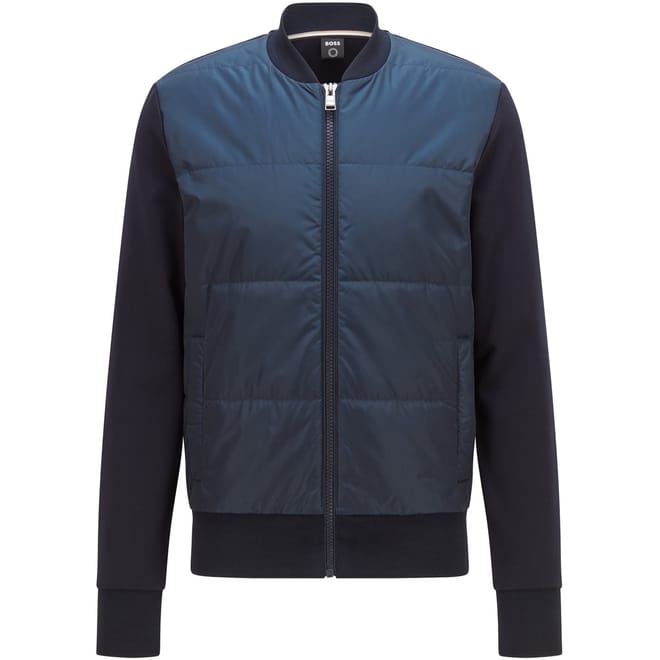 Performance meets polish in the BOSS Skiles Hybrid Jacket, where quilted panelling and jersey sleeves create a bomber shape. Ribbed trims ensure a precise fit, making this piece equally at home with casual denim or smart-casual attire.