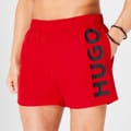 Elevate your summer ensemble with the with the Hugo Boss Abas Swimming Shorts. Crafted with meticulous attention to detail, these shorts embody the brand's rich heritage of sophistication and style. Whether you're lounging by the pool or enjoying a day at the beach, these swimming shorts provide an air of refined sophistication, making them perfect for your summer vacations. Expertly tailored from a 100% polyester fabric, both for the outer and lining, these shorts are designed to provide optimal comfort without compromising on quality. The short length and drawstring elastane waist ensure a secure and personalised fit, allowing you to move with ease in and out of the water. Designed in a solid colourway, these swimming shorts showcase a subtle yet striking aesthetic that effortlessly elevates your poolside attire. To complete the design, the iconic HUGO logo is delicately printed on the left leg for brand recognition. Composition: 100% Polyester. Machine washable, follow care instruct -