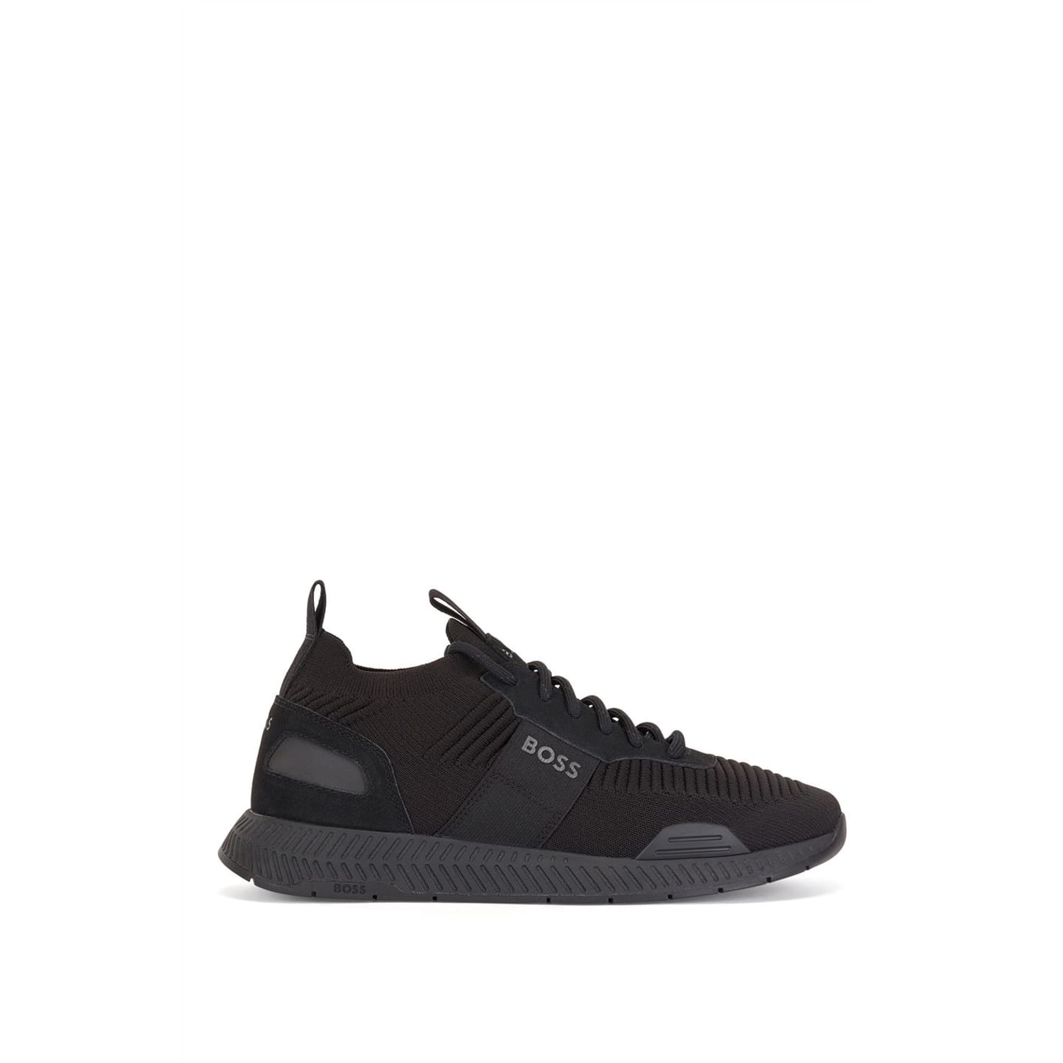 BOSS Titanium Knitted trainers combine athletic innovation with high-quality design elements. The breathable mesh upper and sock-like design deliver adaptive comfort, while reflective details and branding add to the contemporary style.