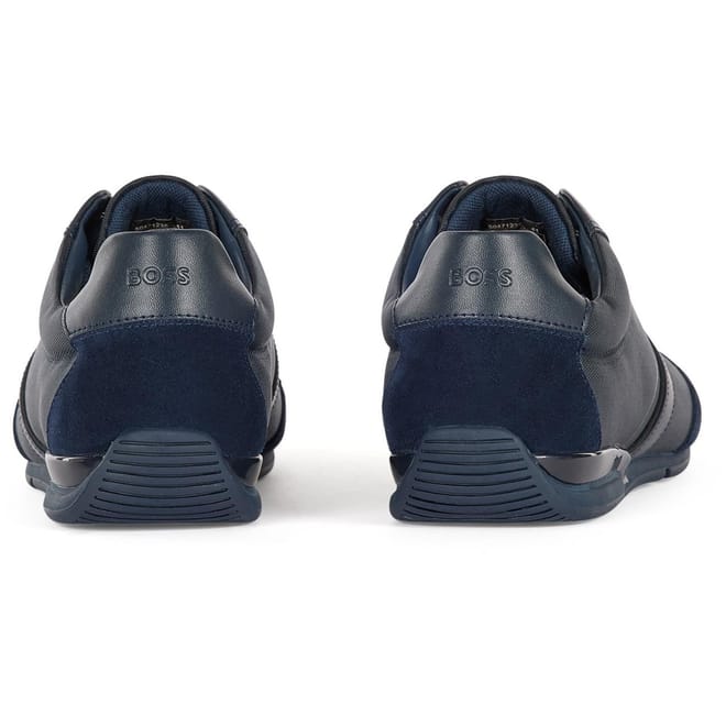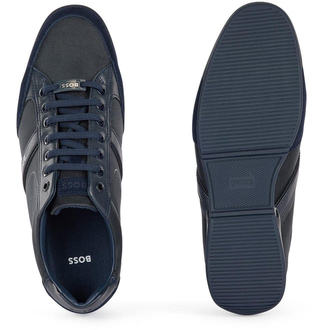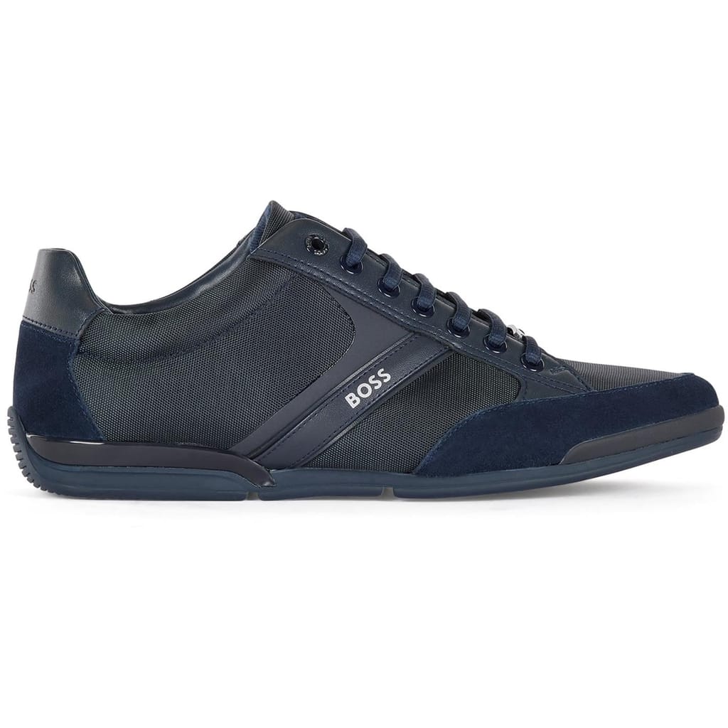 BOSS refines everyday footwear with the Saturn trainers. Textured mesh overlays create striking contrast, while the cushioned sole delivers day-long comfort with bold side stripes adding contemporary appeal.
