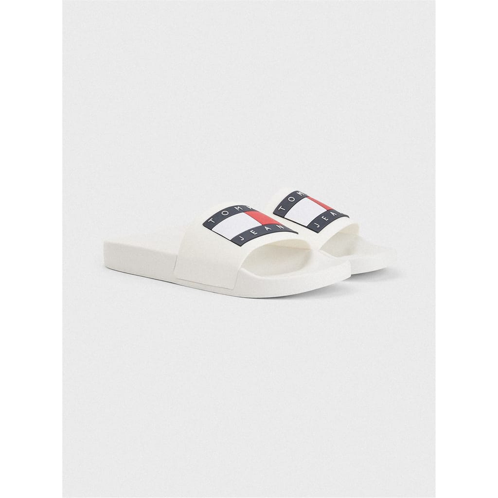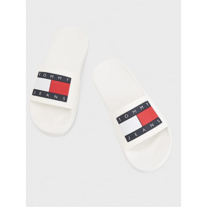 Refresh your poolside look with the Tommy Jeans Flag Sliders. Designed with a rounded toe and contoured footbed for a classic look and comfortable fit, the solid block colouring offers versatile styling. Complete with the Tommy Jeans logo at the front for instantaneous brand appeal. -