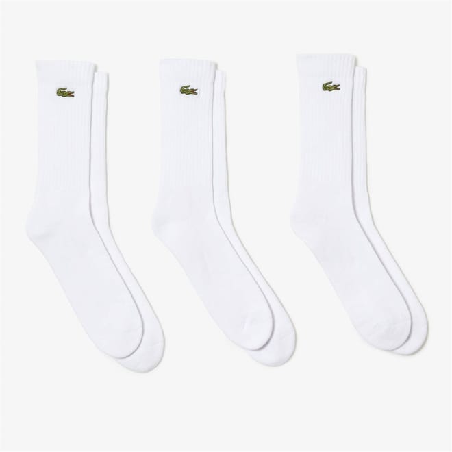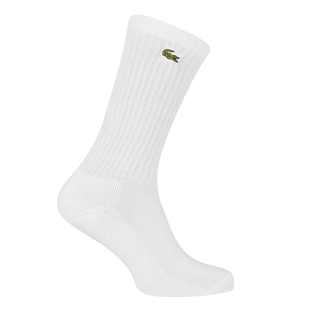 Include some variety in your day to day with the Lacoste 3 Pack Crew Socks. Including 3 separate colour ways in the pack, the socks are crafted in a cotton material with elasticated trims and cushioned heel and toe sections for added comfort. Decorated in a solid colouring, the socks are finished with the Lacoste logo to the ankle for instant brand recognition and a high quality appeal. -