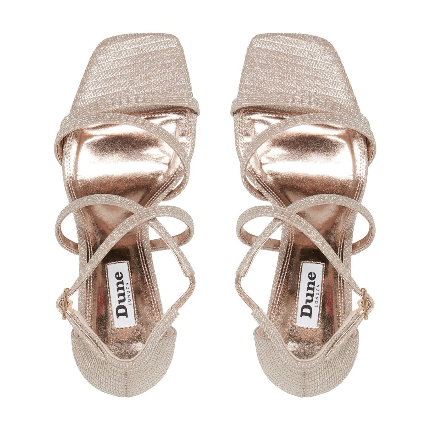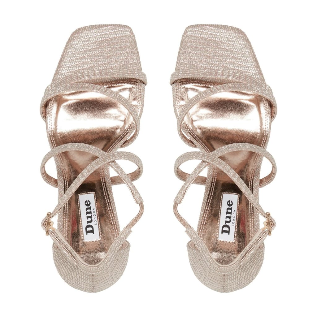 The Dune Musical Heeled Sandals are perfect for hitting the town, crafted with thin strap detail across the upper along with a buckle fastening to the ankle, a medium sized stiletto heel and the classic Dune branding completes the high quality look. -