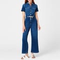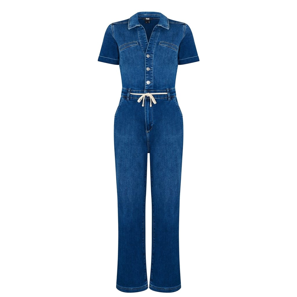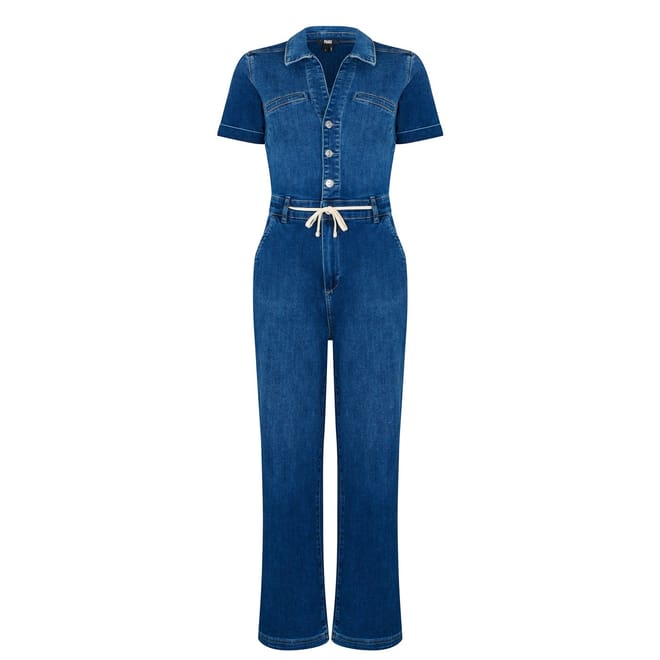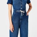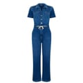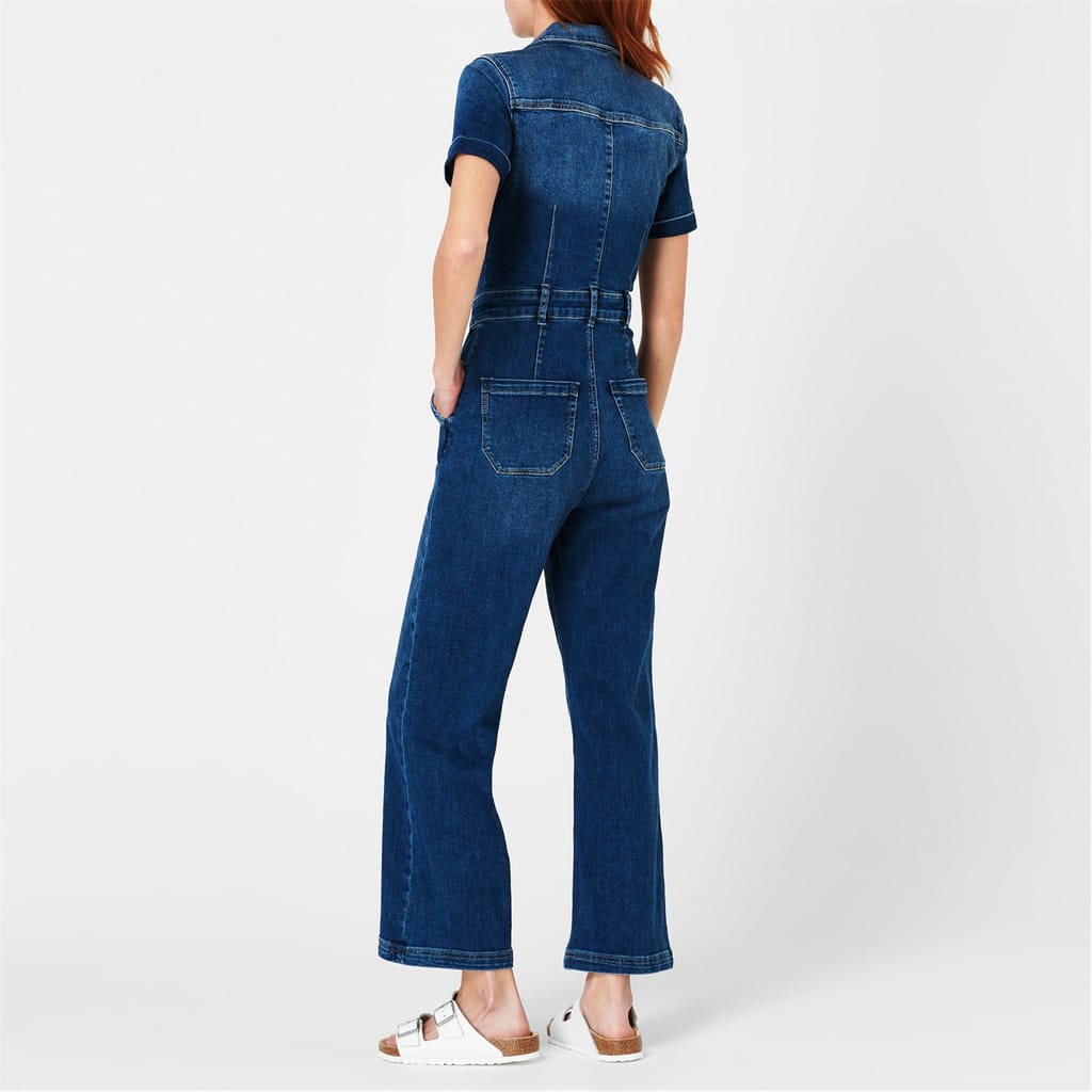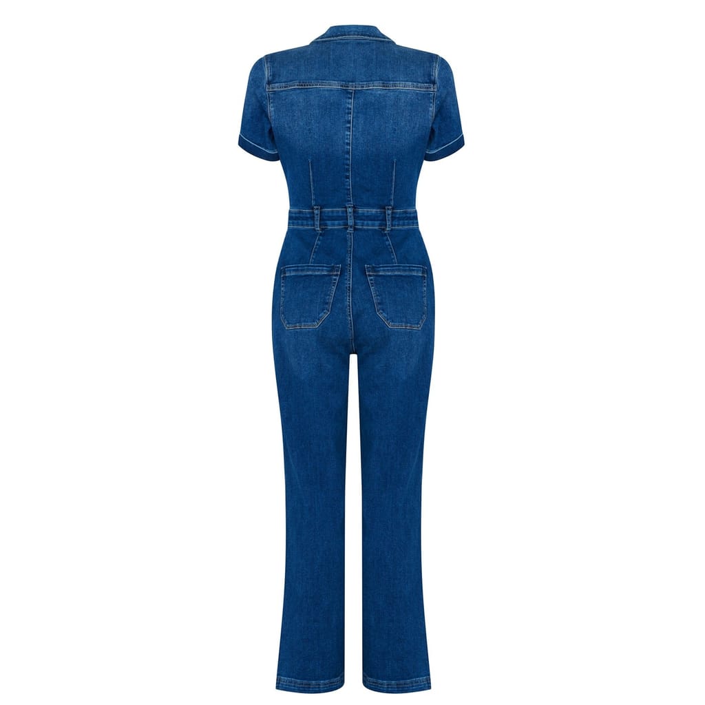 - Framed by a collared v-neckline and wide flared legs, this denim jumpsuit accentuates your figure while ensuring all-day comfort. Adorning the waistline, the brand's signature self-tie belt gracefully cinches the silhouette, creating an alluring hourglass effect. With exposed button fastenings at the front, you can adapt the styling according to the occasion, while the thoughtfully placed slip and patch pockets ensure you can carry your everyday essentials without compromising on style. The versatility of the Carly Denim Jumpsuit knows no bounds. Effortlessly transitioning from casual brunches to stylish evening events, it is a wardrobe sta -