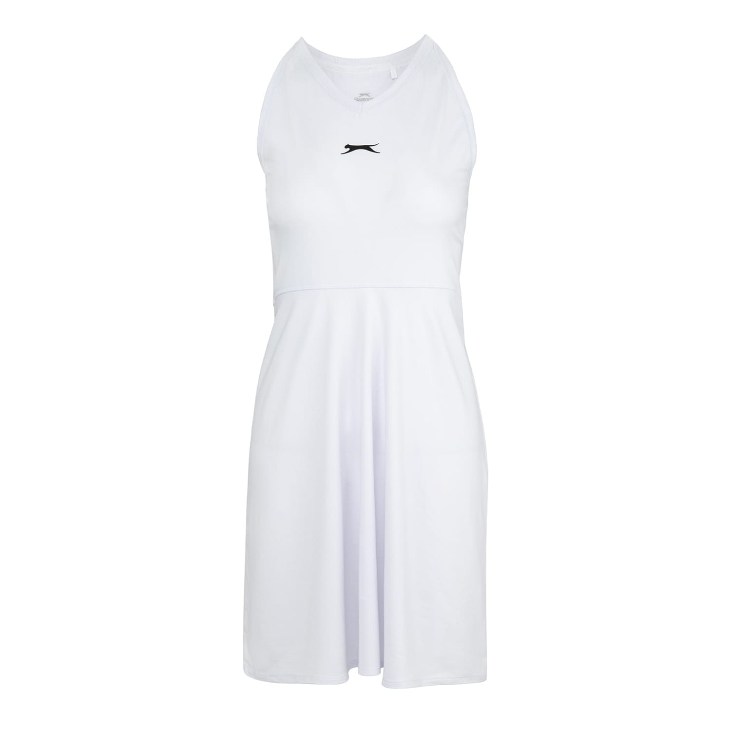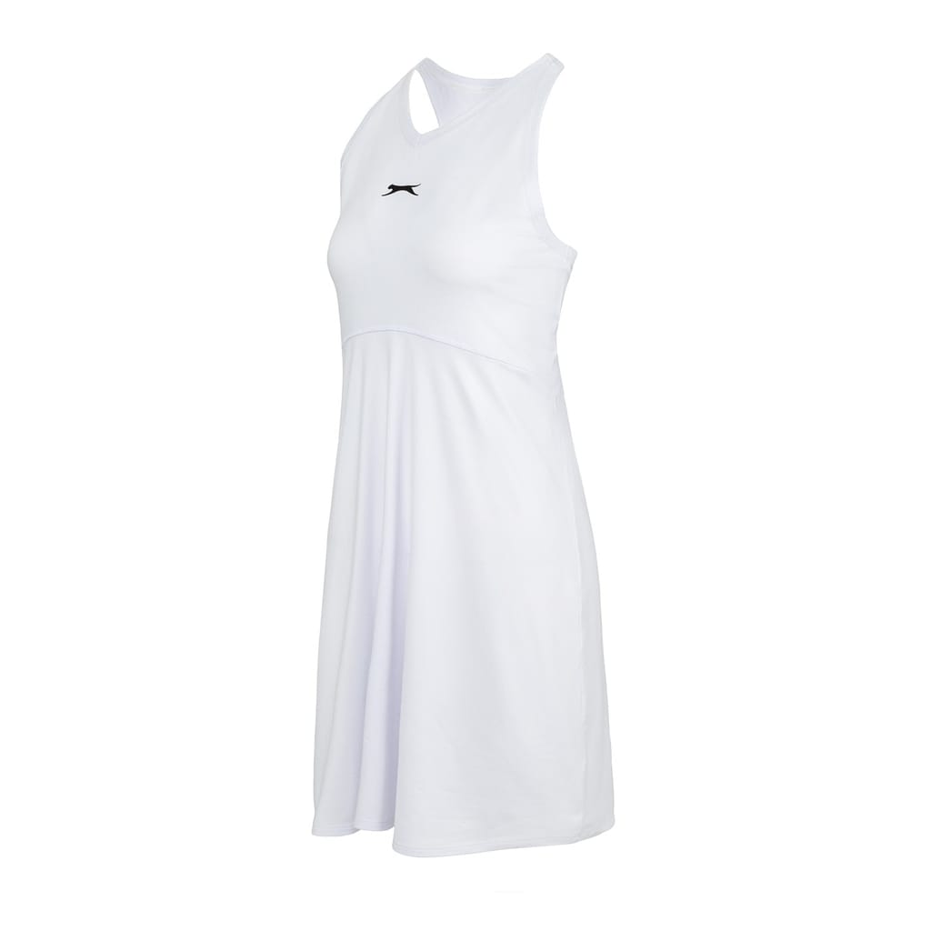 - This Slazenger Dress is a sleeveless style with a crew neckline for a classic look in a lightweight construction. This dress is a solid colouring throughout designed with a signature logo.