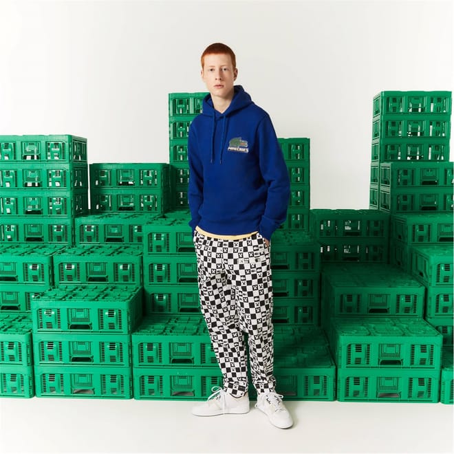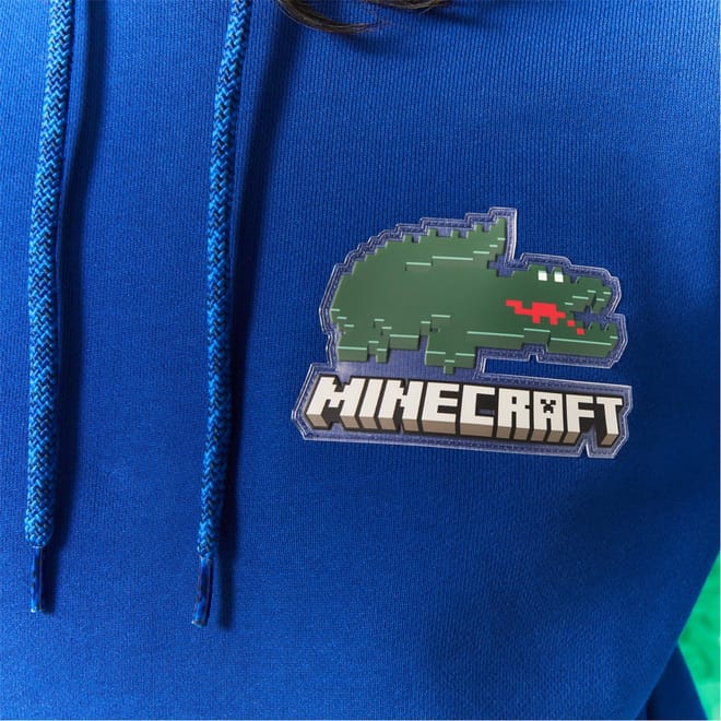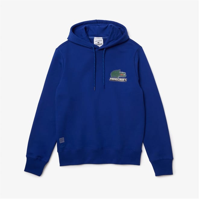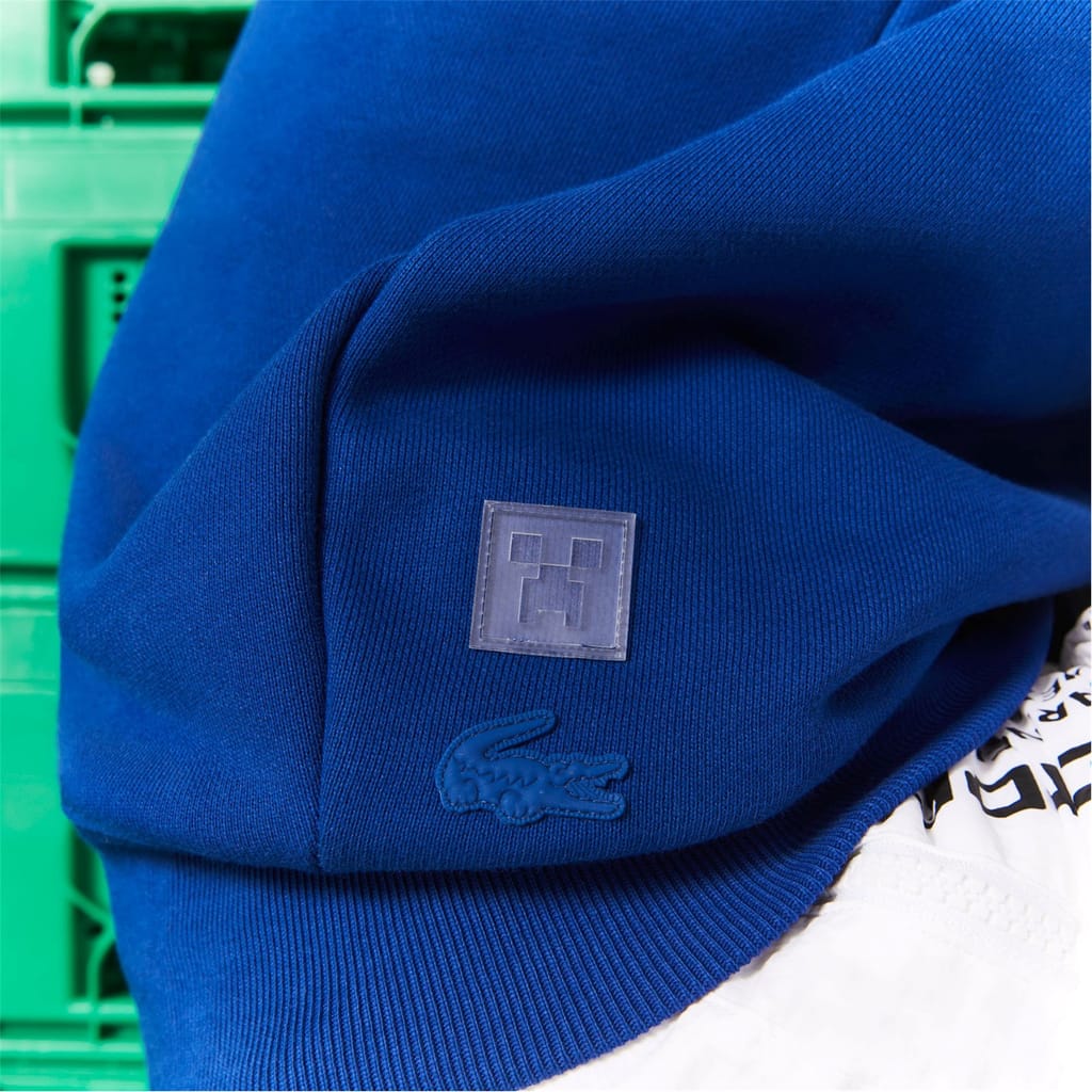 From the capsule collect this Lacoste X Minecraft Hoodie is crafted from organic cotton jersey, for softness and a natural feel. Cut in a classic fit, the jumper features a fixed hood with drawstring fastening to adjust the fit, long sleeves with ribbed cuffs and hem. The look is finished with a Minecraft logo and a pixel crocodile embossed on the chest to celebrate the world of the famous video game and that of the signature Lacoste logo. -