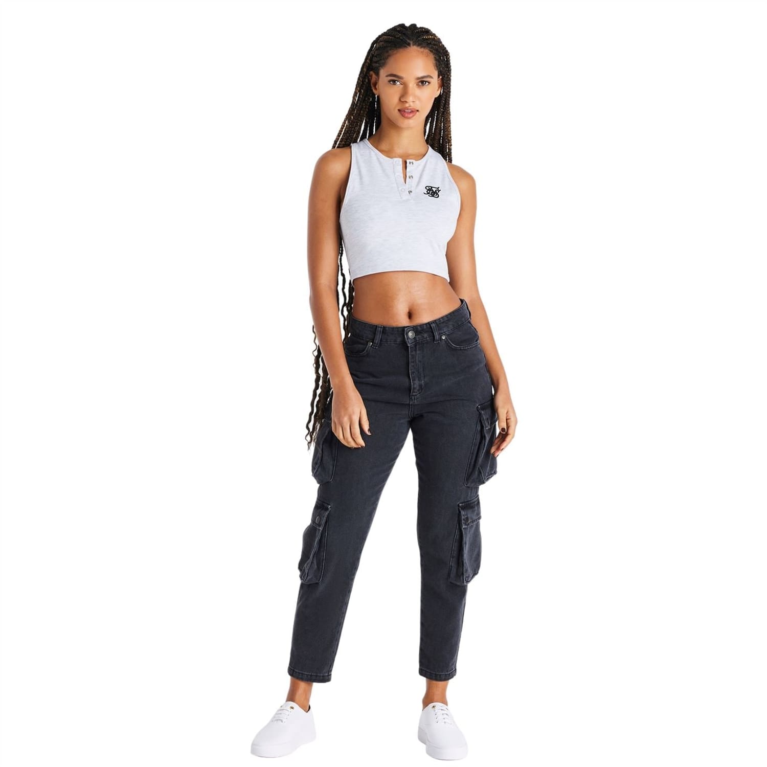 This Siksilk cropped top is a stylish addition to your casual collection. Featuring a solid pattern and sleeveless design, it offers a slim fit for a modern look. The top is embellished with a logo and includes a snap closure for added convenience. -