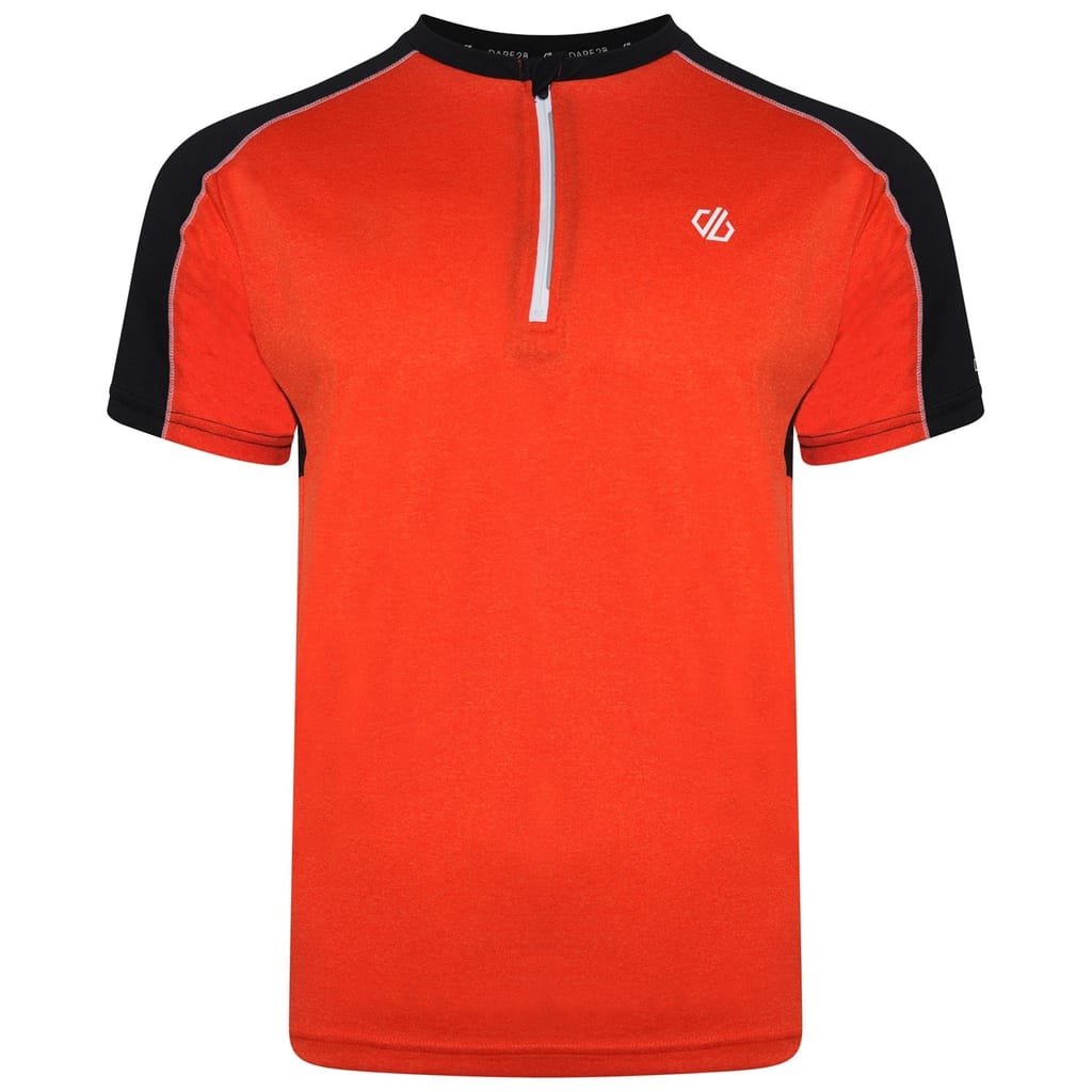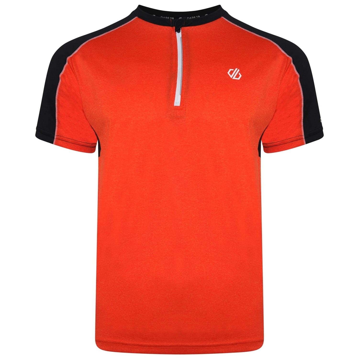 The men's Dare 2b Aces Jersey - half-zip workout jersey with short-sleeves. Made from sweat-wicking Q-Wic fabric with breathable mesh detailing. Sleek zipped pocket. Reflective trim. -
