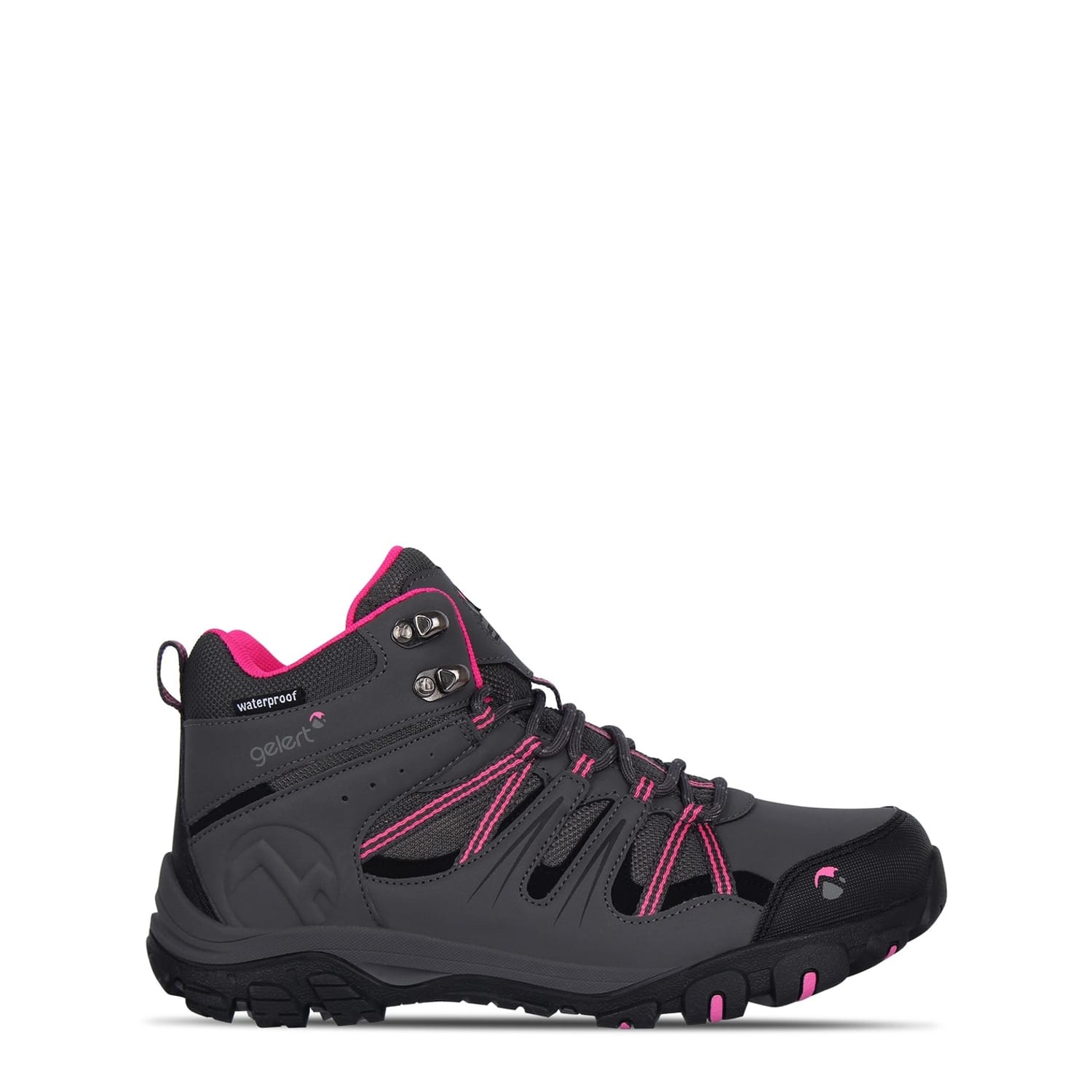 The Gelert Horizon Mid Waterproof Juniors Walking Boots are perfect for the next time you want to hit the trails, crafted with a padded mid ankle collar along with a classic lacing system and a pull loop to the heel that allows for an easy on and off. A waterproof membrane to the upper provides fantastic protection from the elements and a rugged moulded outsole provides fantastic traction on a wide range of surfaces, completed with the classic Gelert branding. -