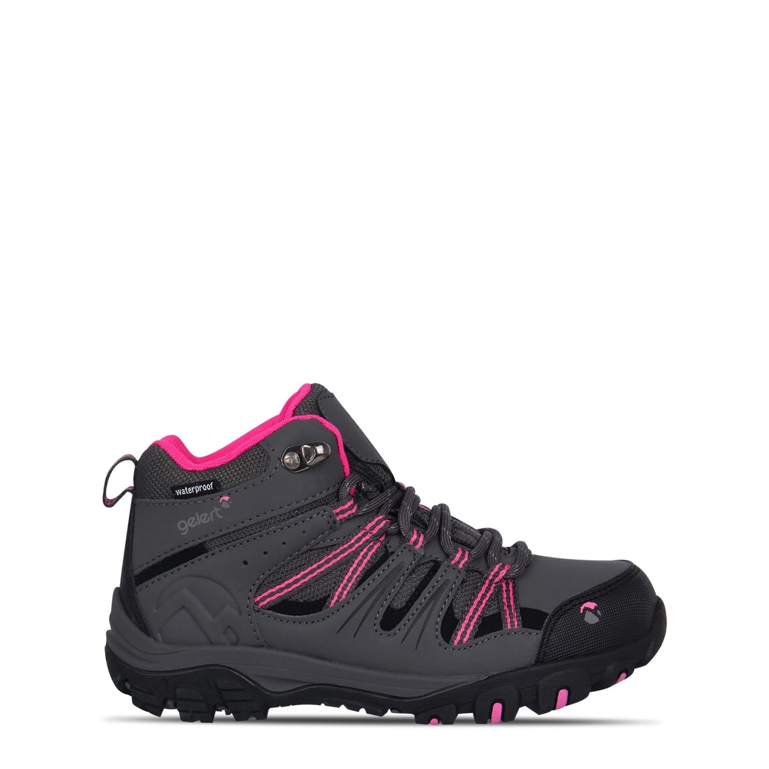 The Kids Gelert Horizon Mid Waterproof Walking Boots are perfect for the next time you want to hit the trails, crafted with a padded mid ankle collar along with a classic lacing system and a pull loop to the heel that allows for an easy on and off. A waterproof membrane to the upper provides fantastic protection from the elements and a rugged moulded outsole provides fantastic traction on a wide range of surfaces, completed with the classic Gelert branding. -