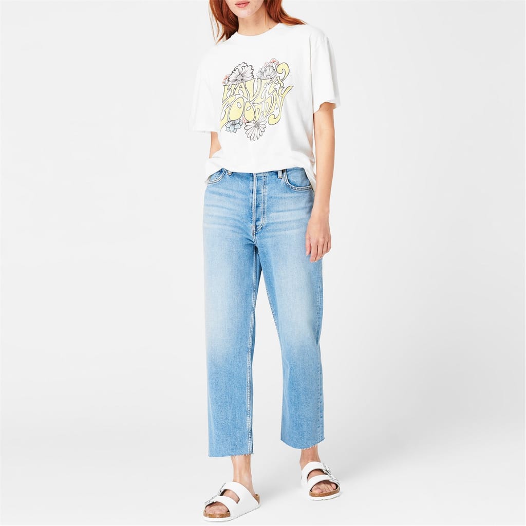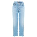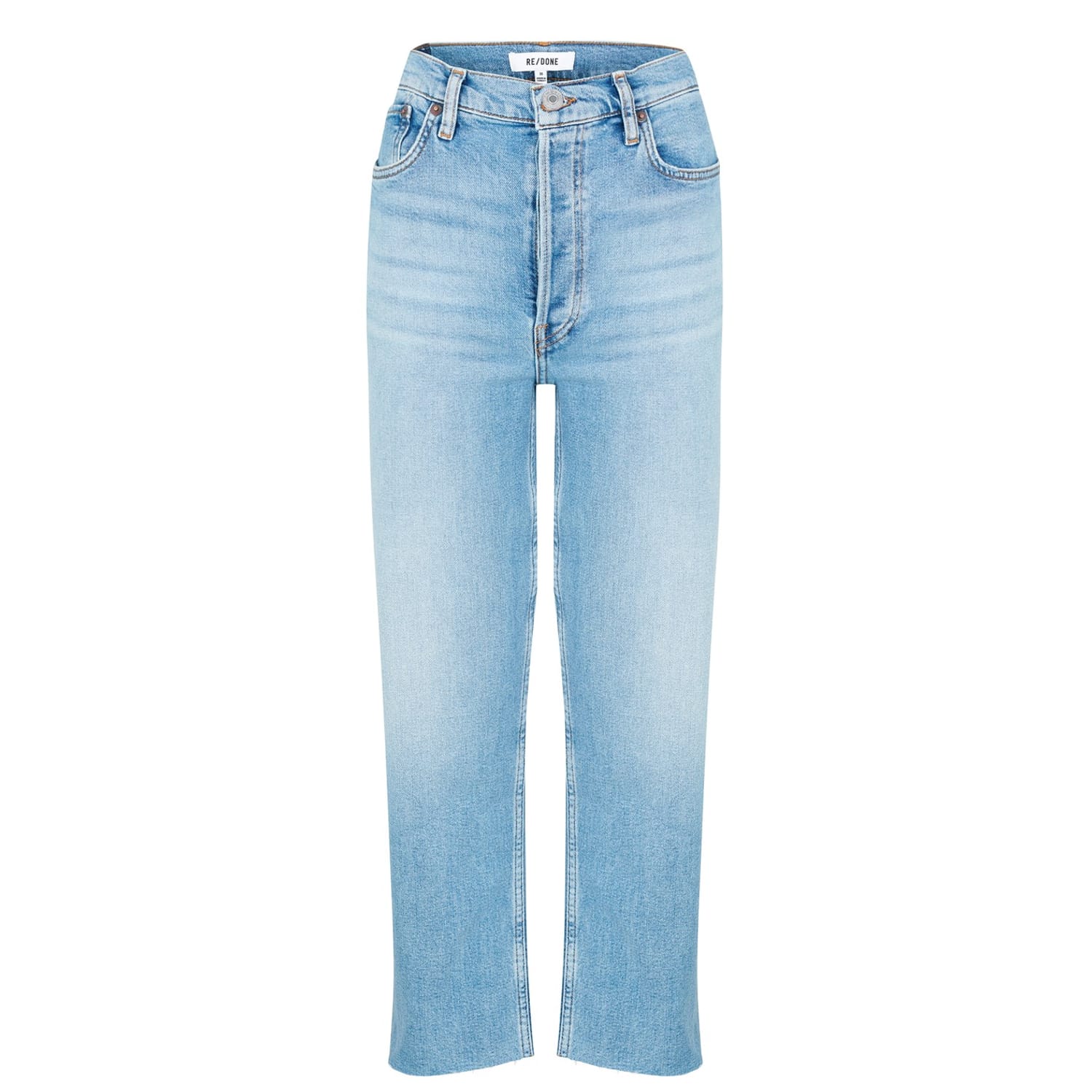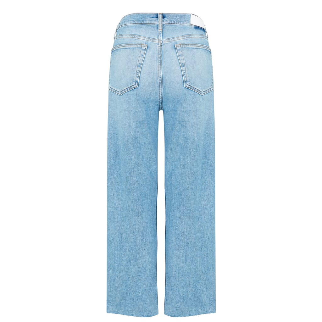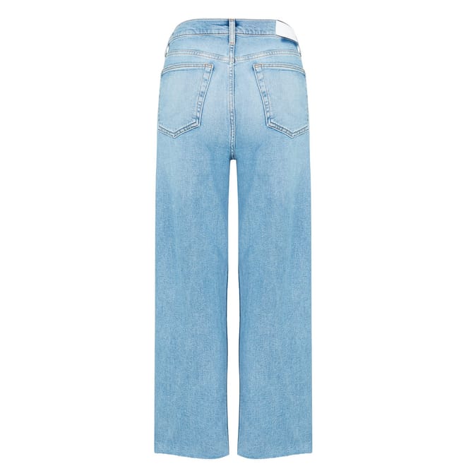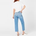 - Expertly made from a luxurious cotton blend denim, these button-fly jeans ensure both comfort and style with every wear. The high-rise fit accentuates the curves, while the straight leg creates a classic silhouette that effortlessly complements any ensemble. Cut to an ankle length with raw unfinished hems, a touch of contemporary flair is added to this retro denim style. Designed with the traditional five-pocket construction, carrying your everyday essentials is effortless, while the belt loops further enhance their versatility, making them an essential addition to any wardrobe.