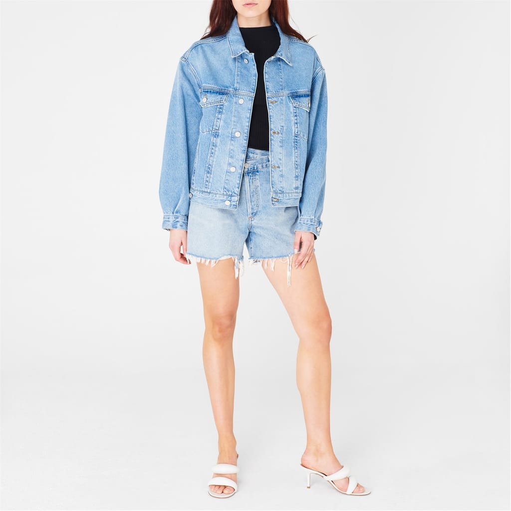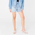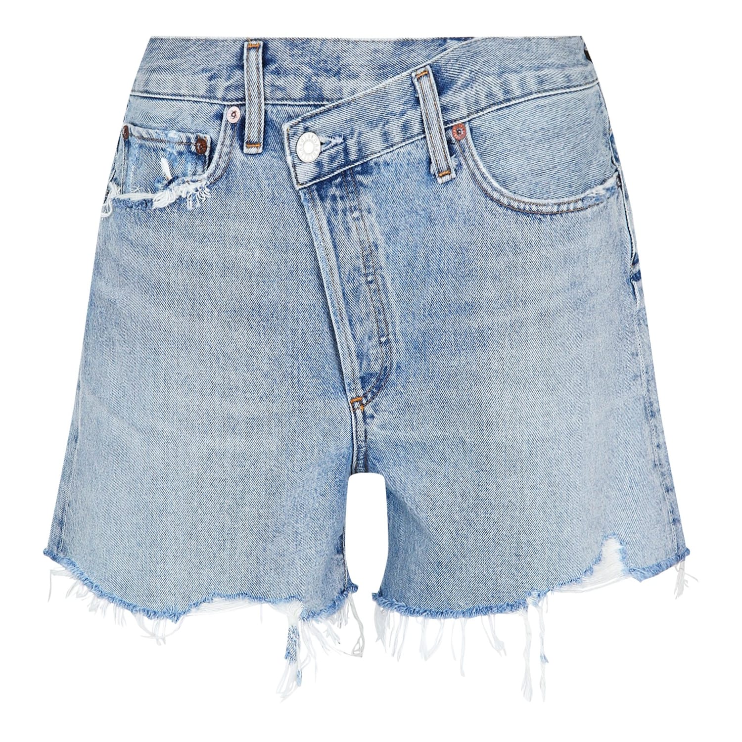 From daytime outings to evening strolls, the Agolde Criss Cross Denim Shorts transcend the limitations of ordinary style. Crafted from premium organic cotton, these shorts not only embrace sustainability but also offer a vintage appeal, with a relaxed mom-style silhouette. Cut to the thigh with distressed raw hems, the criss-cross waistband is secured by an asymmetrical button closure offering an unexpected feature that underscores the sophistication and uniqueness of this piece. Complete with five classic pockets and belt loops to the waistband, this wardrobe staple effortlessly adapts to any occasion and season. Composition: 100% Organic Cotton. Follow care instructions. -