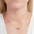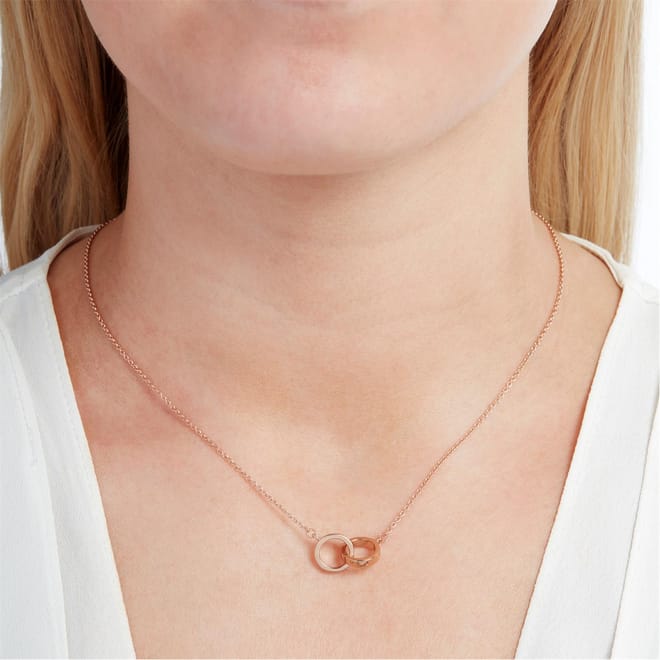 See the beauty in simplicity with this timeless necklace design, featuring interlinking rings that are embossed with our logo. This simply beautiful piece would make the perfect gift that anyone will love, or treat for yourself that you’ll wear with everything. Available in silver, rose gold-plated or silver and rose gold plated.
