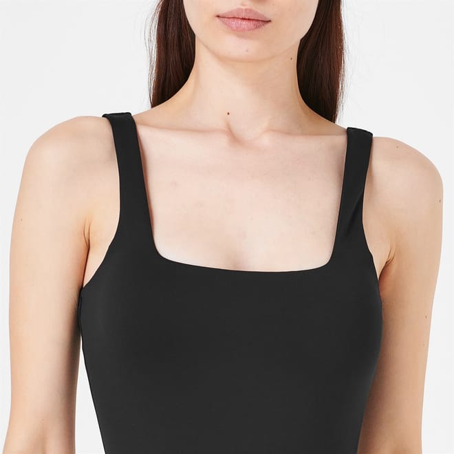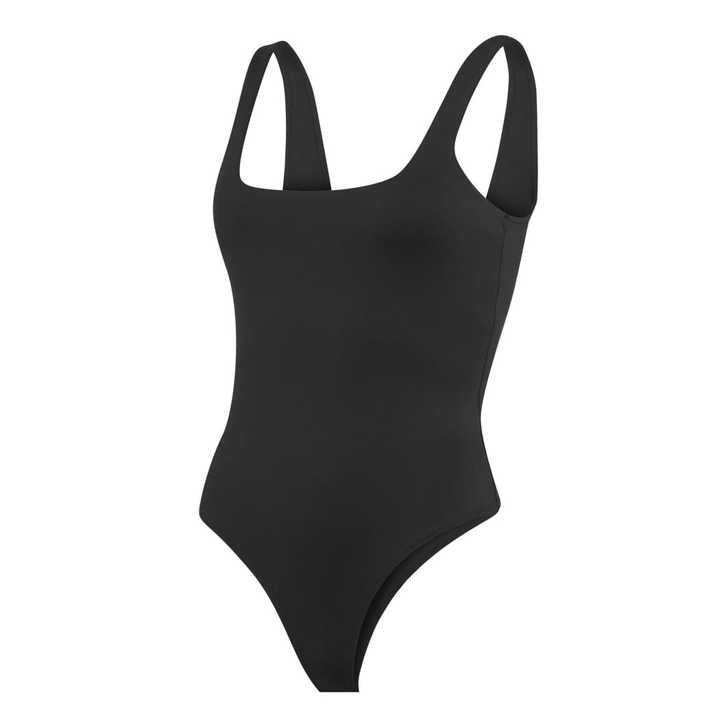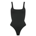 In a curve-hugging and shape-enhancing silhouette, the Good American Modern Scuba Bodysuit has been crafted from a luxurious compressive fabrication designed to sculpt the body and create a smooth look. With wide shoulder straps and a square neckline, this piece is complete with a snap button fastening to the hem with a thong rear. Style yours with tailored pants or jeans. 80% Polyamide, 20% Elastane. Machine washable at 40 degrees.