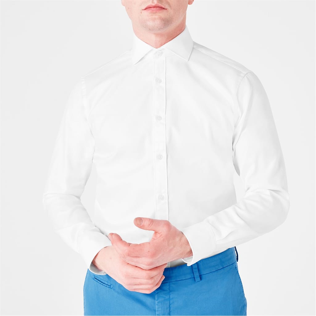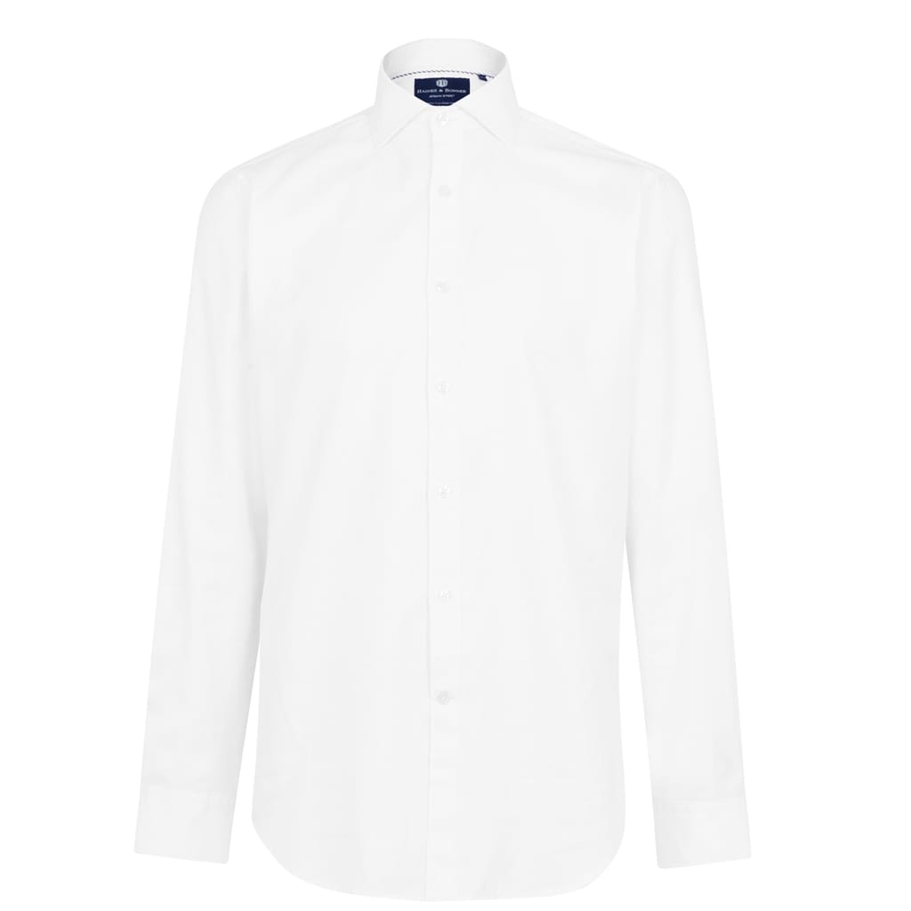 Update your smart essentials with the Haines And Bonner Tailored Cut Cotton Twill Shirt. Crafted in a pure cotton fabric, this shirt features long sleeves, a cutaway collar, a central button down closure, buttoned cuffs and a curved hemline. The look is finished with the Haines And Bonner Shirt branding. -