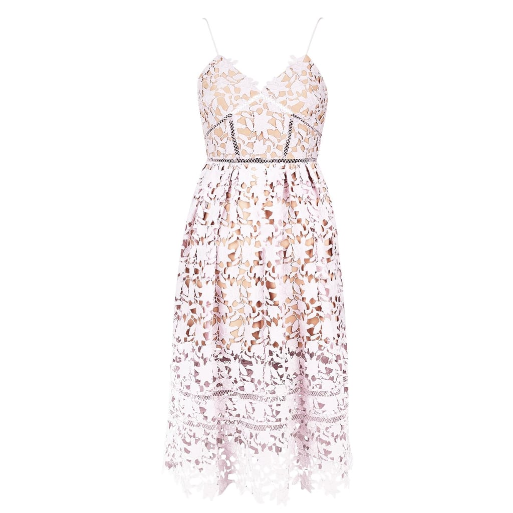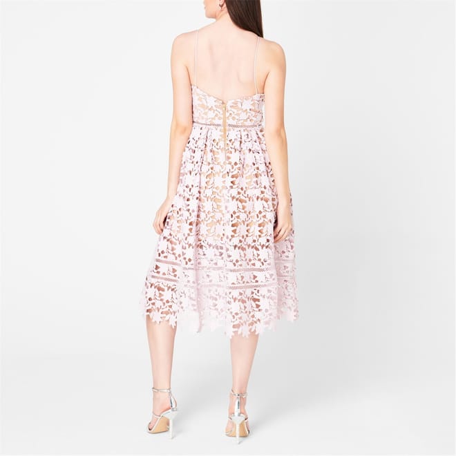 Embody the season with Self Portrait's classic Azalea Midi Dress. Crafted from a guipiere lace this breathable and lightweight piece is perfect for summer events. Inspired by the beauty of spring this timeless piece is suitable for a variety of occasions from garden party to wedding guest dressing, for an elegant look, wear yours with your favourite heels.