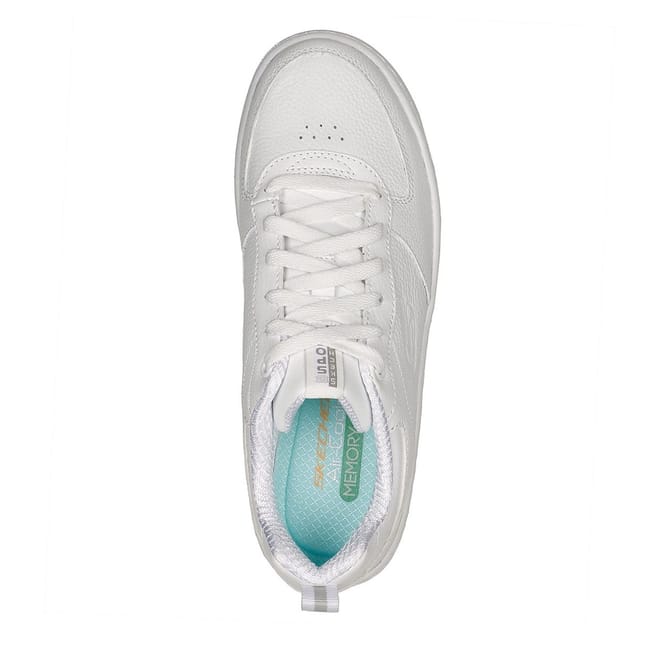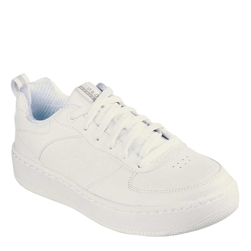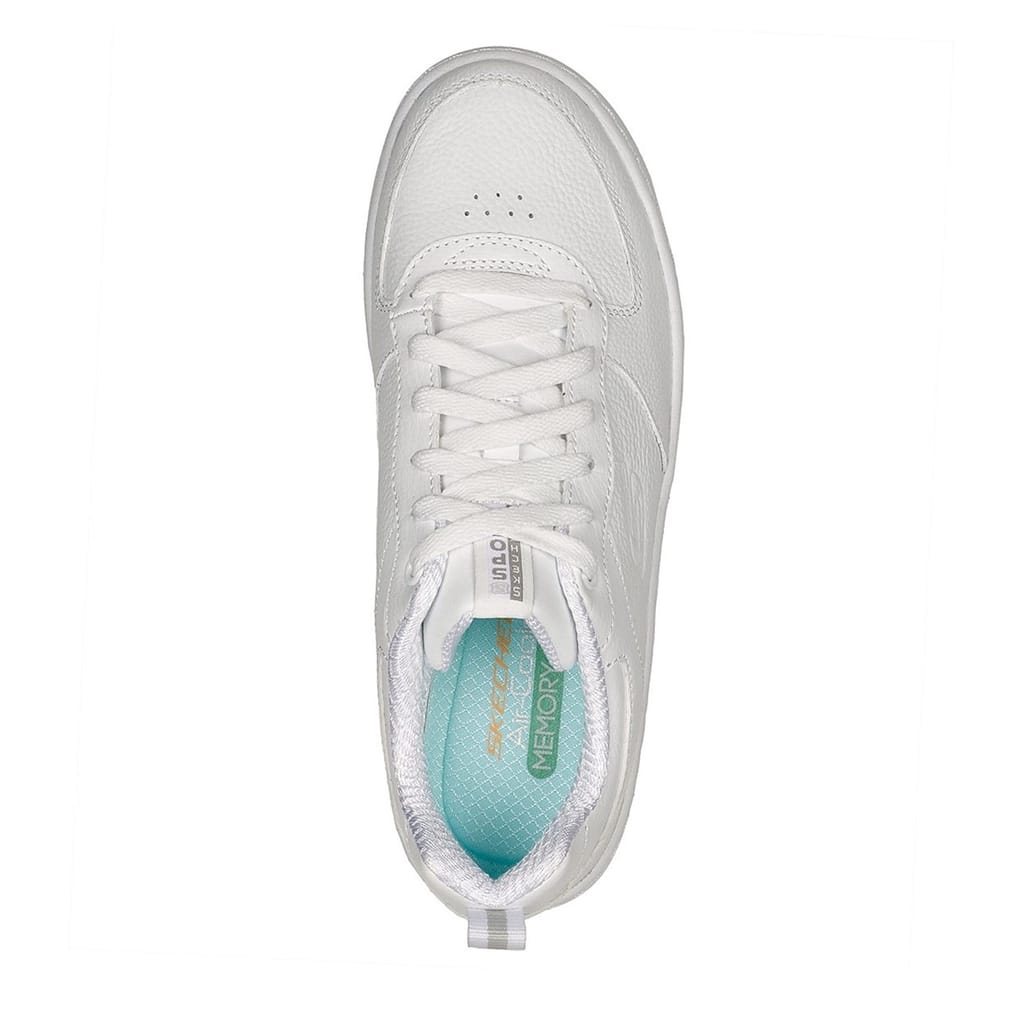 Combining sports aesthetics with classic court styles, this low profile silhouette has been crafted with a smooth leather and synthetic upper boasting a clean and minimalistic colourway for a highly versatile styling piece. Set upon a rubber sole with the brands Air-Cooled Memory Foam cushioned insole for added underfoot comfort, this pair offer a full lace fastening for a secure fit. The look is complete with Skechers branding embossed to the side with a small logo patch adorned to the padded tongue. -