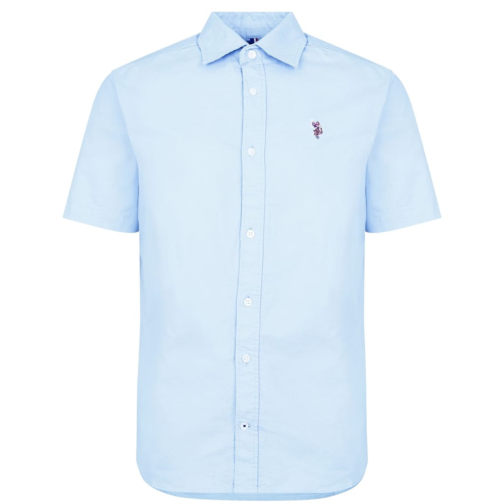 Elevate your collection with this US Polo Assn Shirt. Crafted with a button down collar and full button fastening for a secure fit, it features short sleeves with ribbed trims. This shirt is a solid colouring throughout designed with the signature logo embroidered to the chest and is complete with US Polo Assn branding. -