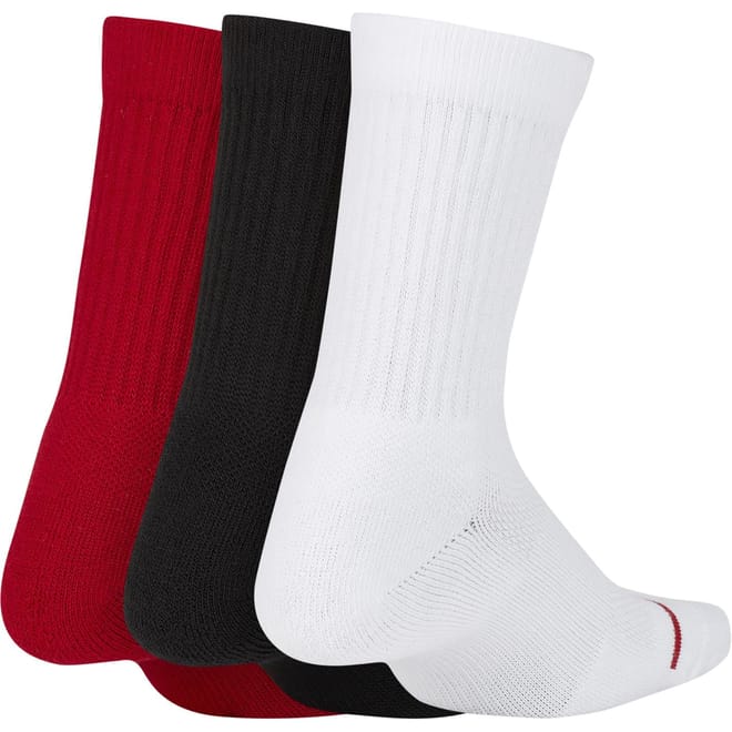 Refresh your daily essentials with these Jordan 3 Pack Crew Socks by Nike. Be seen on courts with the iconic contrast Jump-man branding to cuff, featuring an elastic woven fabric aids comfort for sporting or daily casual wear. The socks are crafted from a polyester mix of fabric. -